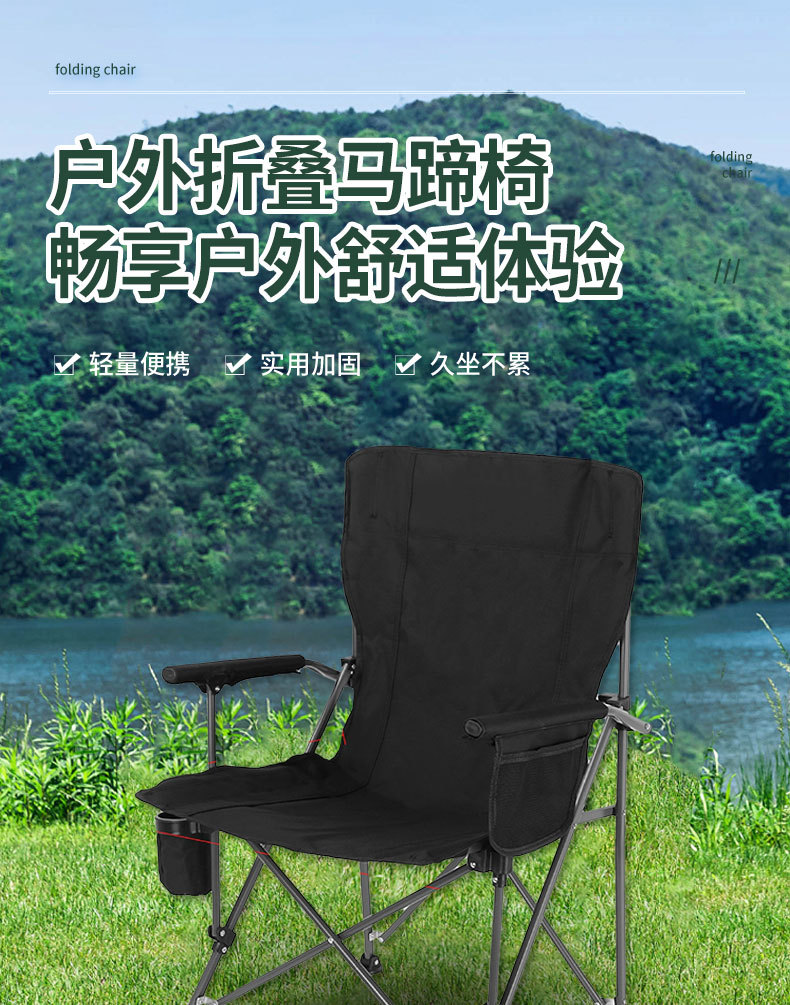 卸売 アウトドア キャンプ 快適 折りたたみ 馬蹄椅子 軽量 持ち運び 簡単設置 レジャーチェア カップホルダー付き 収納バッグ付き