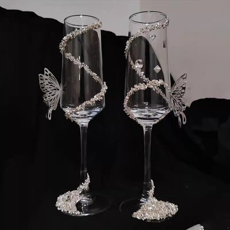结婚酒杯手工diy高脚杯香槟高级蝴蝶敬酒杯创意交杯酒水晶玻璃杯