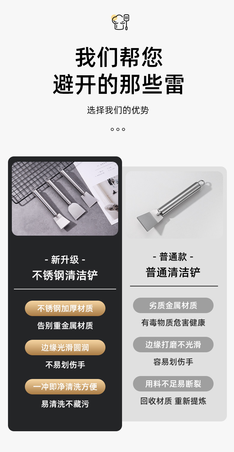 油汚れ専用スクレーパー、接着剤除去、ステンレススパチュラ、キッチン冷蔵庫タイル、多機能掃除ナイフ、鍋底雨花石