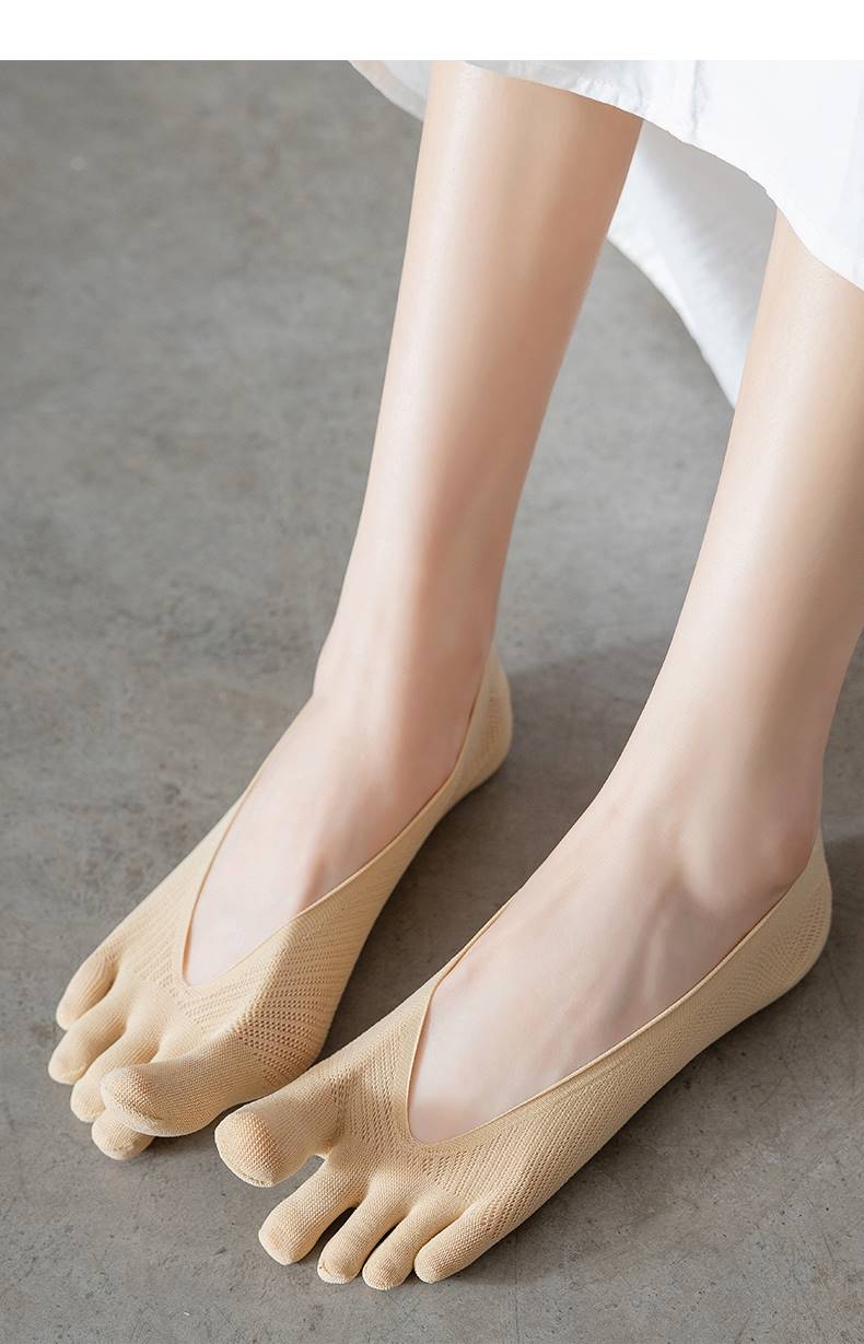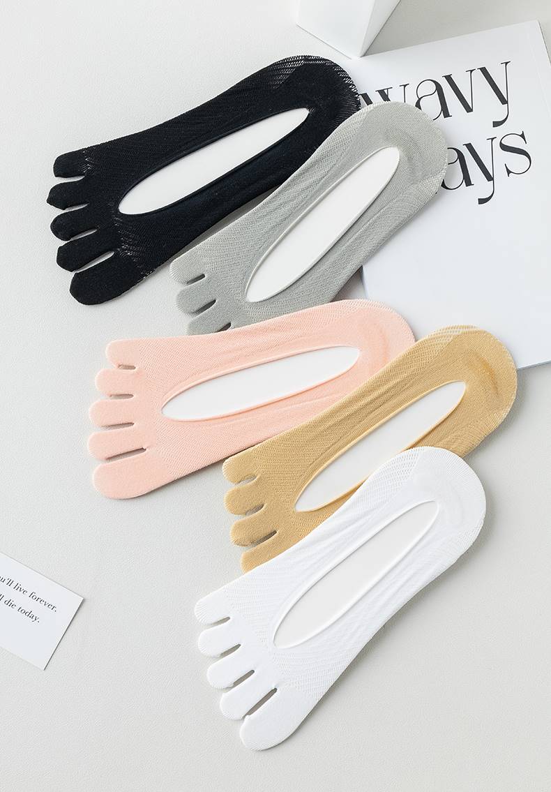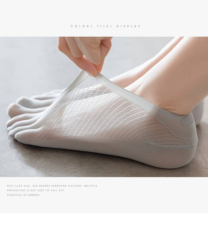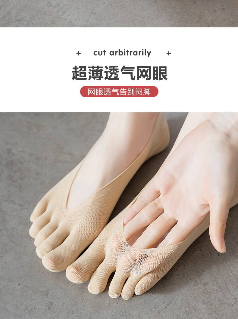 五指の靴下の女性の春の夏の薄いタイプの網の目の通気性の抗菌の足の空気の船の靴下は足の指の女性の指の靴下と落ちません。