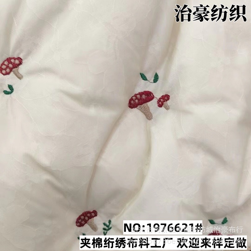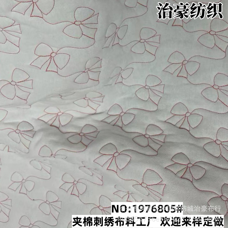 新款绗缝夹棉秋冬棉服面料平板收纳包斜跨包小蝴蝶结刺绣布绣花布