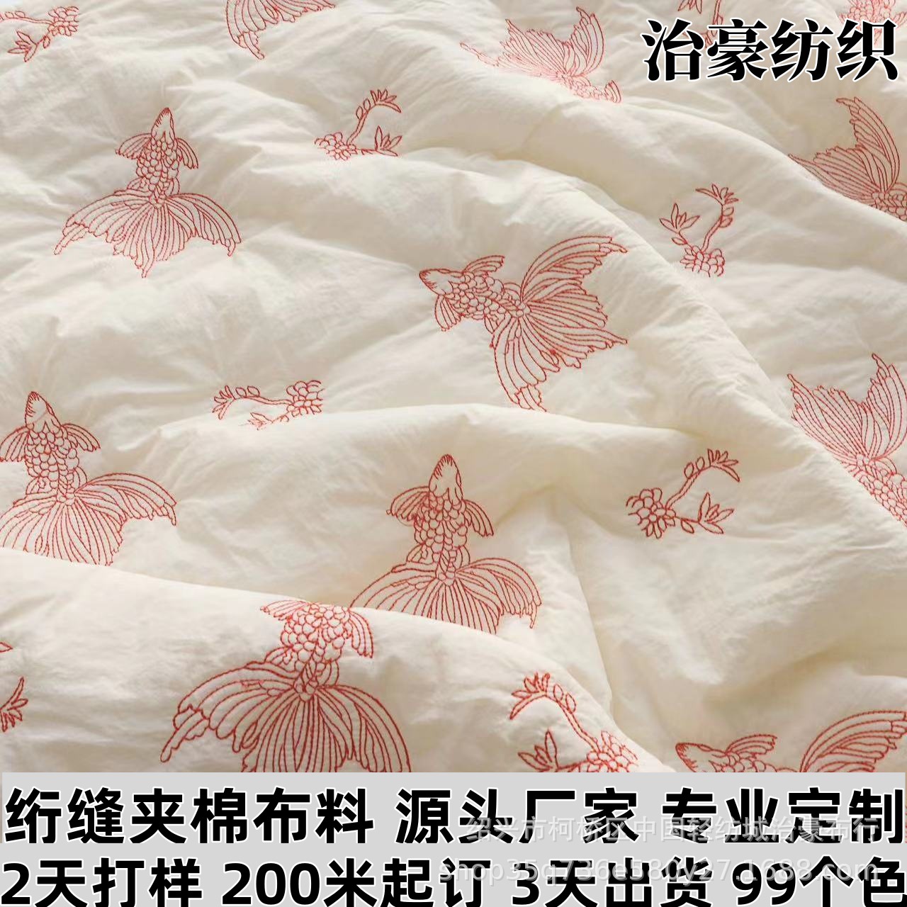新中国式カラー金魚刺繍生地秋冬綿服キルティング生地綿服化粧品収納バッグ布