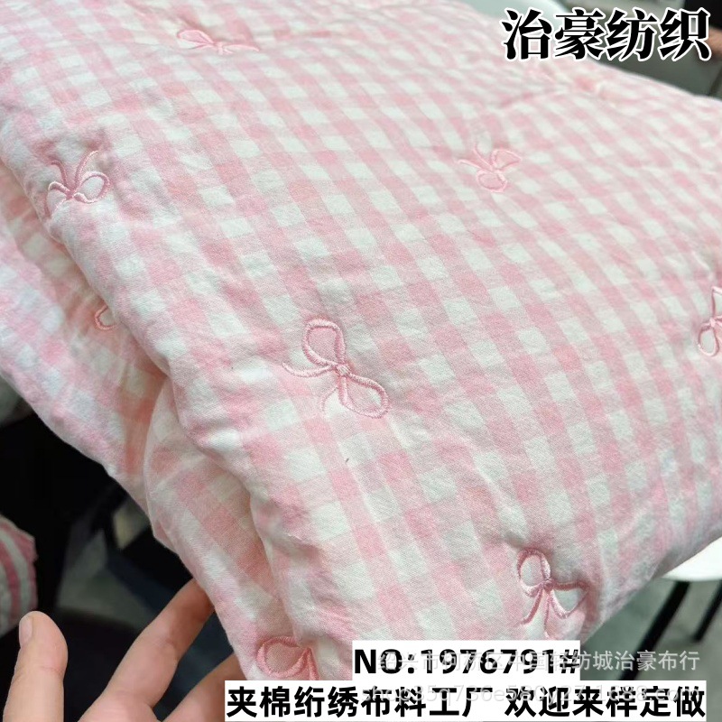 ins韩风粉色夹棉压棉蝴蝶刺绣面料秋冬儿童服装棉服马甲绗棉diy布