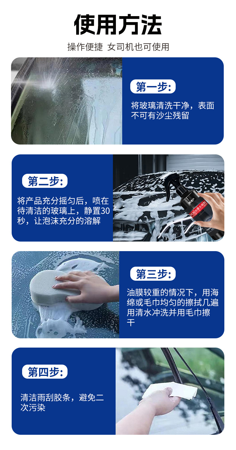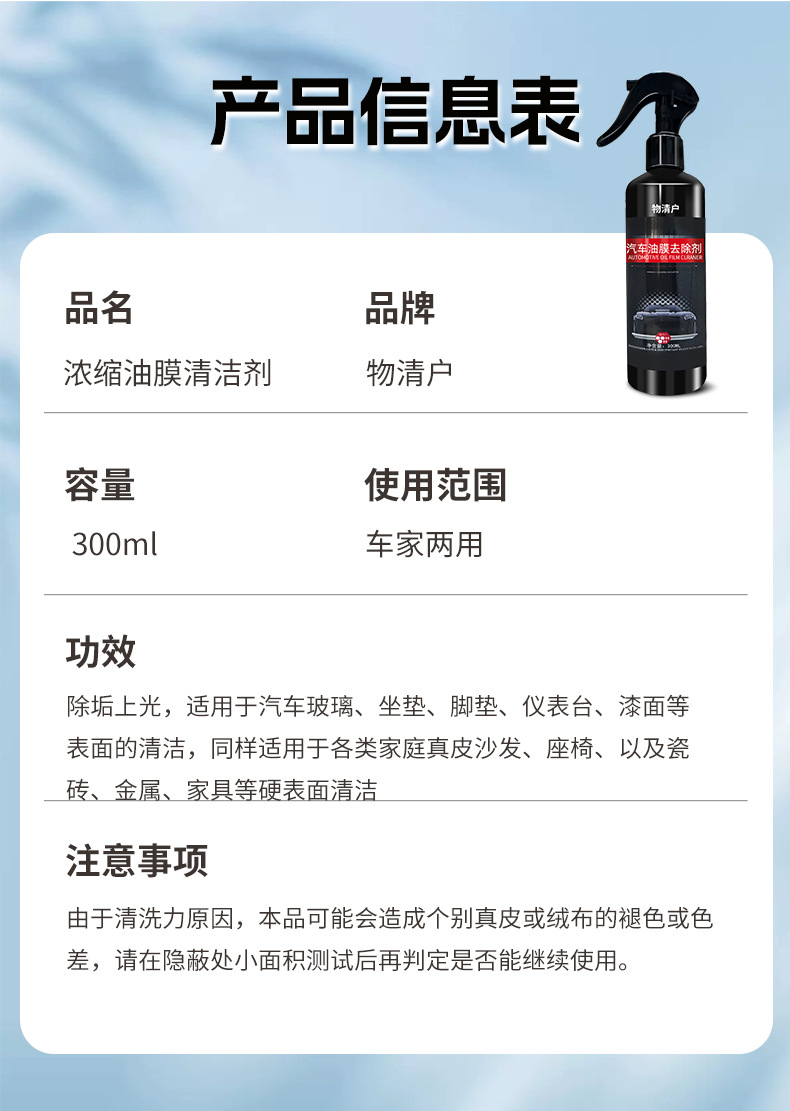 油膜去除剂汽车前挡风玻璃去油膜喷剂清洗剂车窗污渍清洁剂油膜净