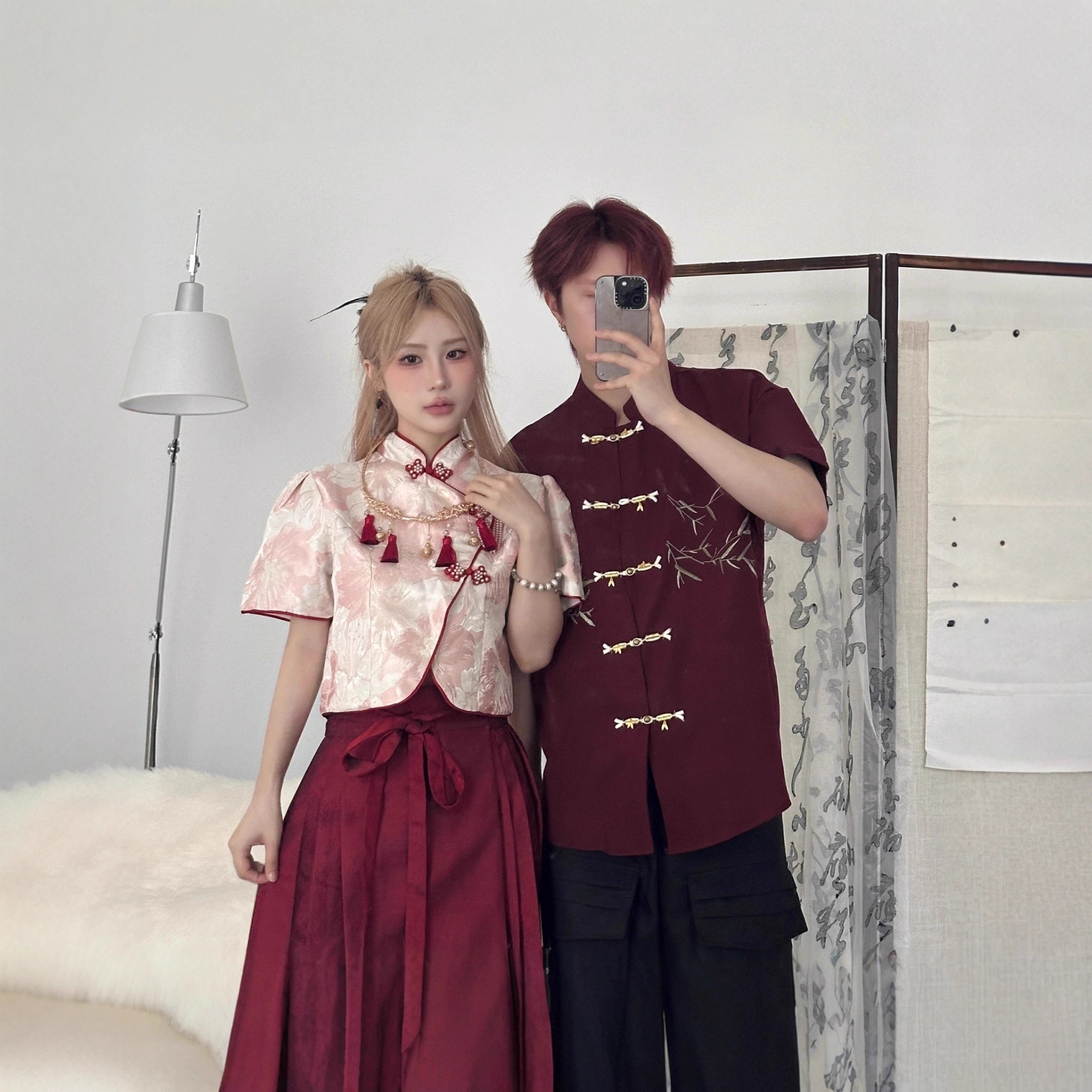 中式唐装男中国风情侣装短衬衫高级感复古刺绣汉服马面裙宽松大码