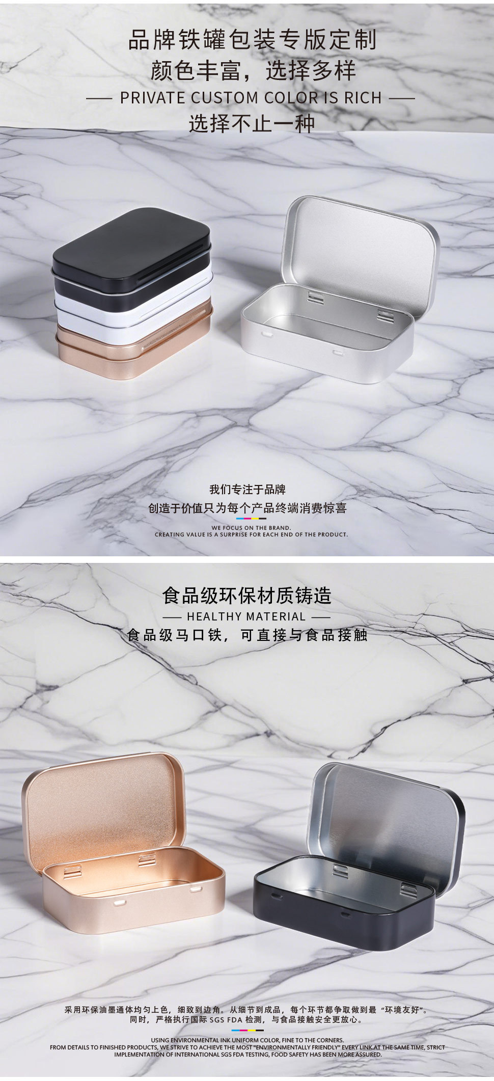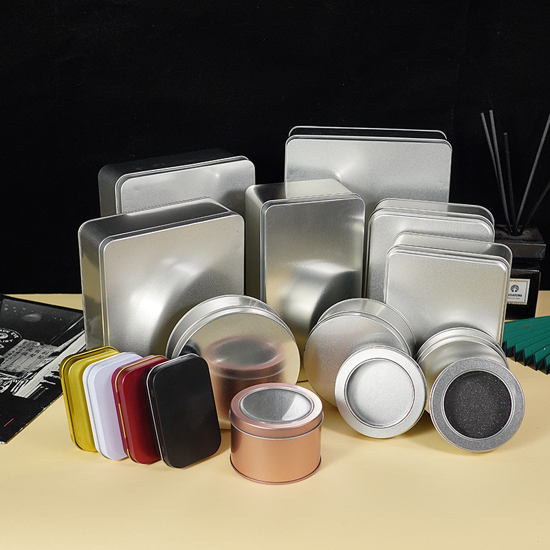 角型鉄箱包装現物銀白押し引き蓋ins窓開け小鉄箱ブリキ箱鉄箱