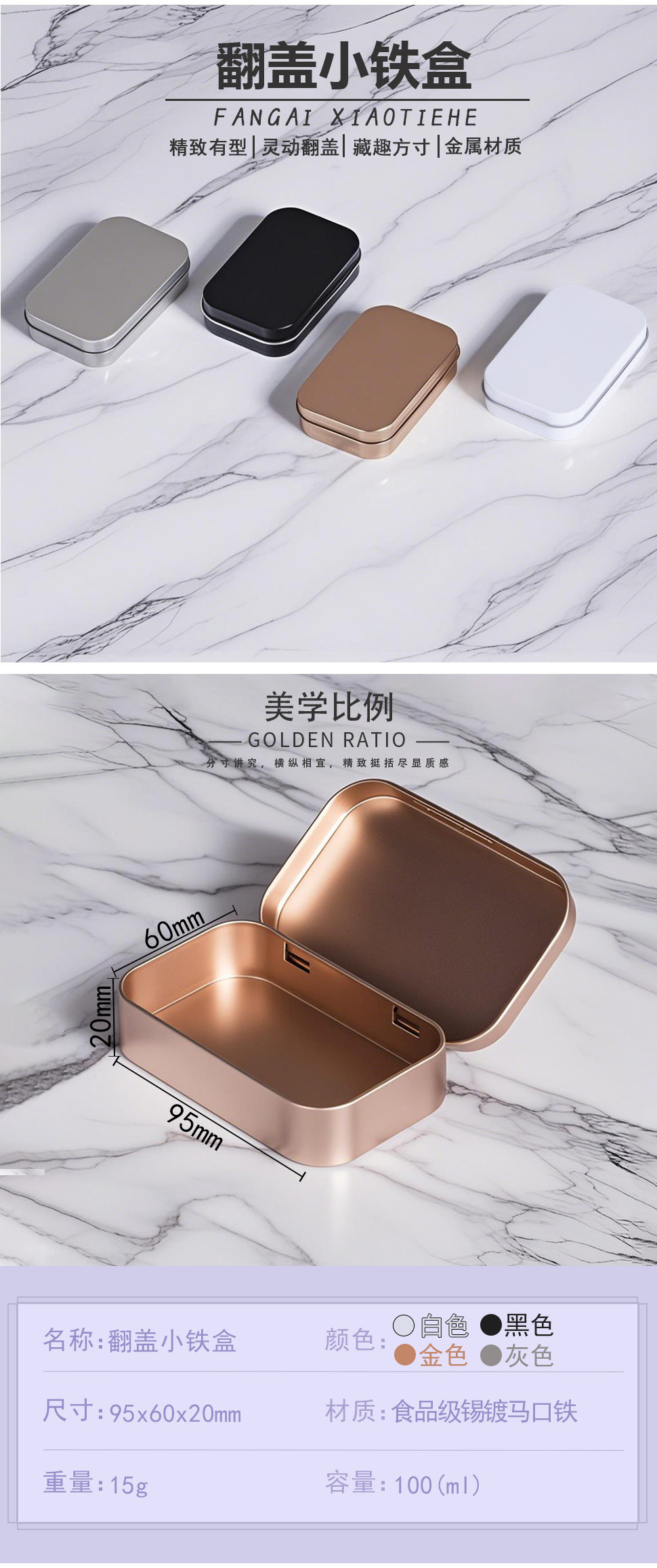 95方形翻盖铁盒 美容工具U盘数据线化妆品首饰连体小物件收纳铁盒