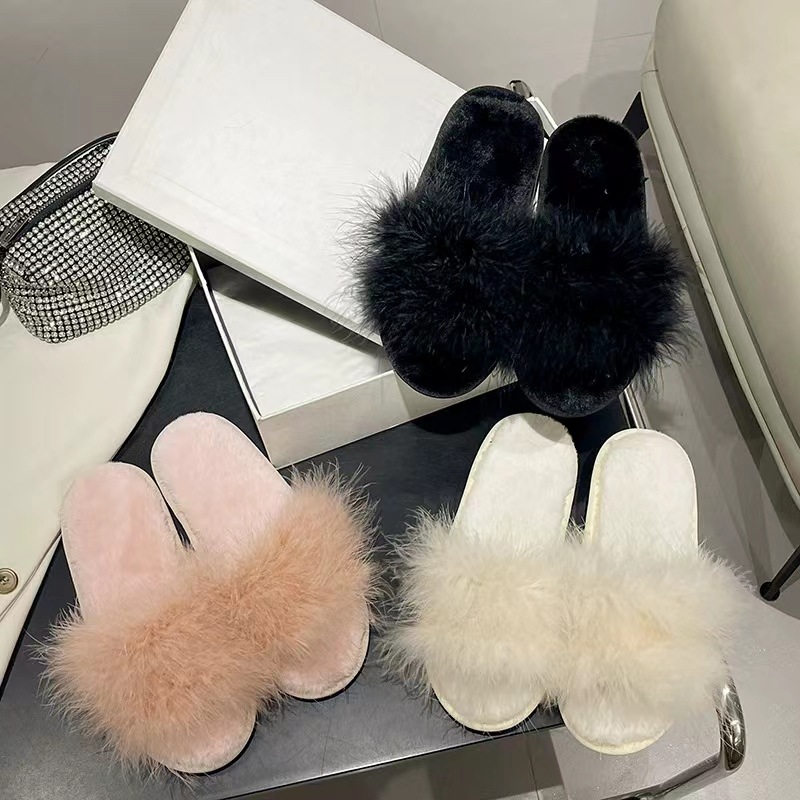 厂家批发 新款蝴蝶结毛毛拖鞋