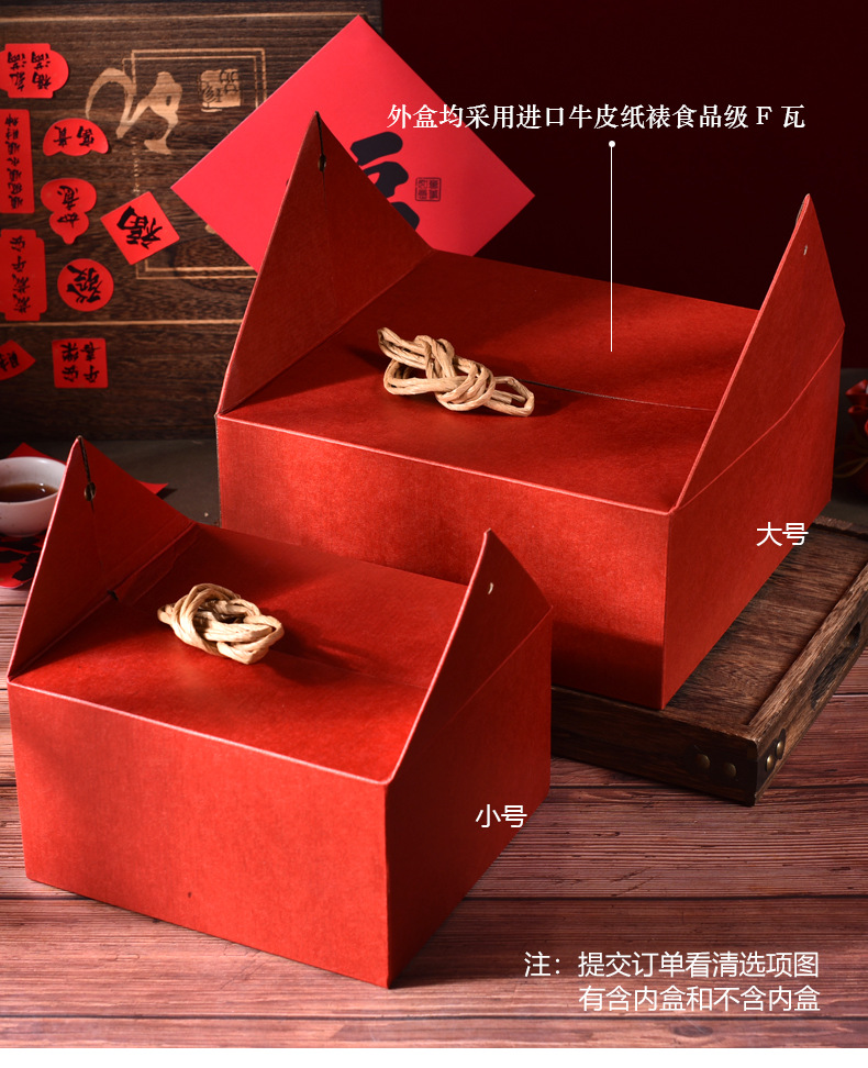 中国菓子包装箱、赤九方格子ギフト箱、緑豆ケーキ、月餅、花菓子、携帯用お土産牛カード箱