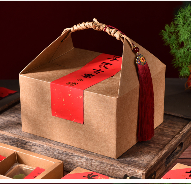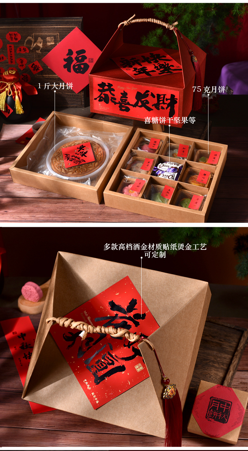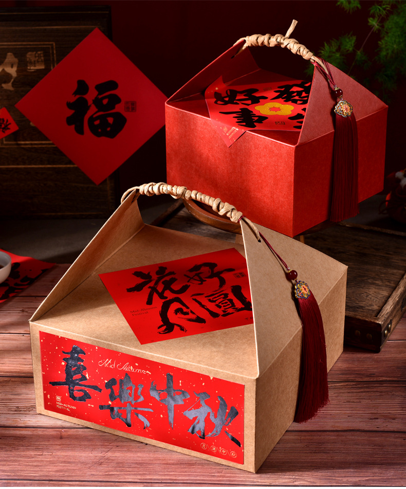 2025中秋の包装箱伝統的な古い月餅箱復古クラフト紙500グラム1斤の手提げ包装礼箱