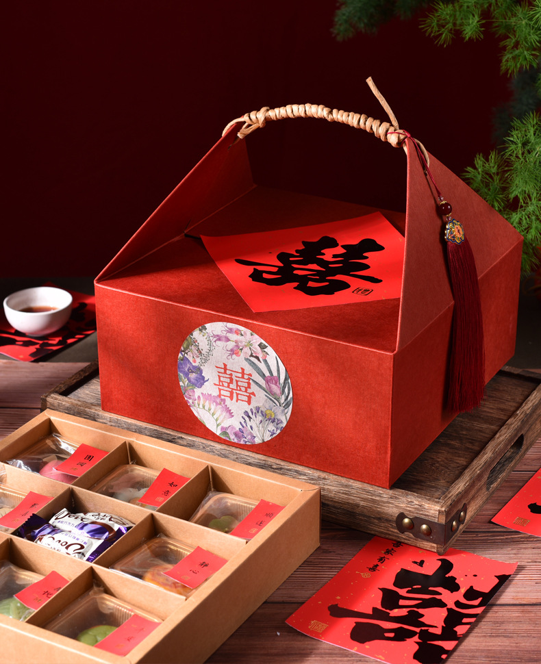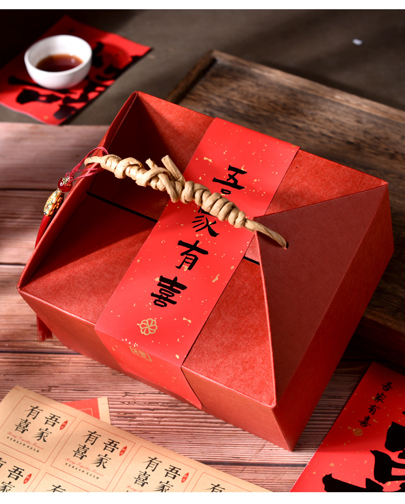新年の新作中華風ギフトボックス、高級感のあるお土産用空箱、ブライズメイドの結婚式のお菓子箱、赤ちゃんの1歳の誕生日、結婚祝い