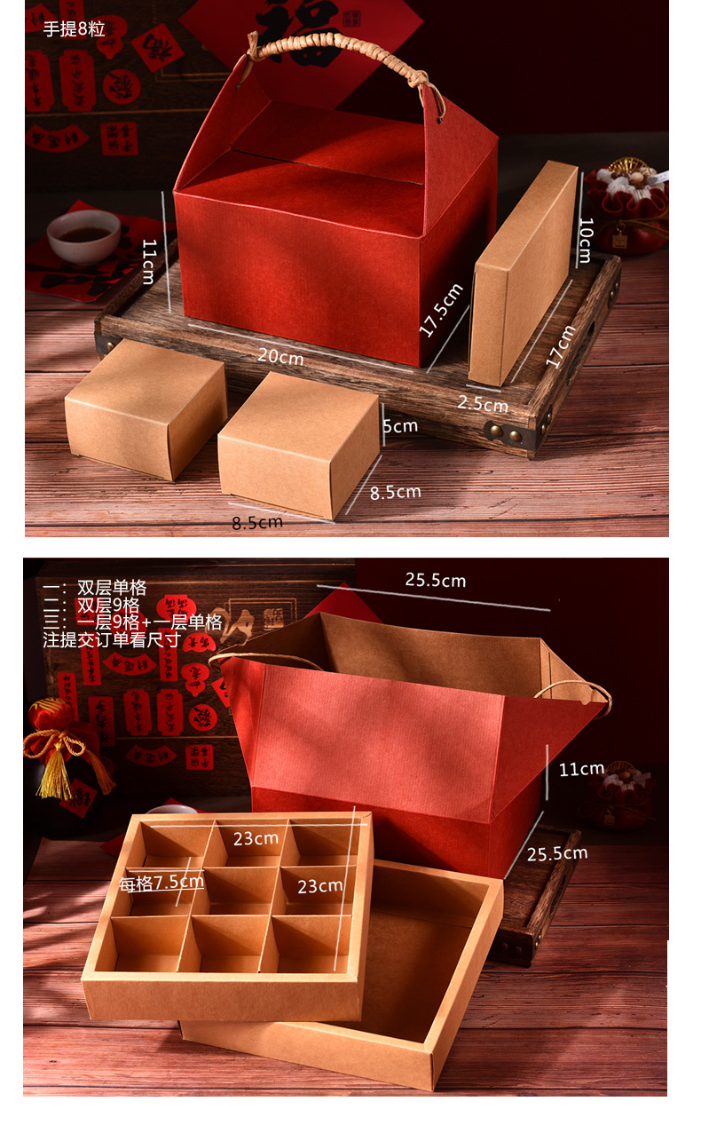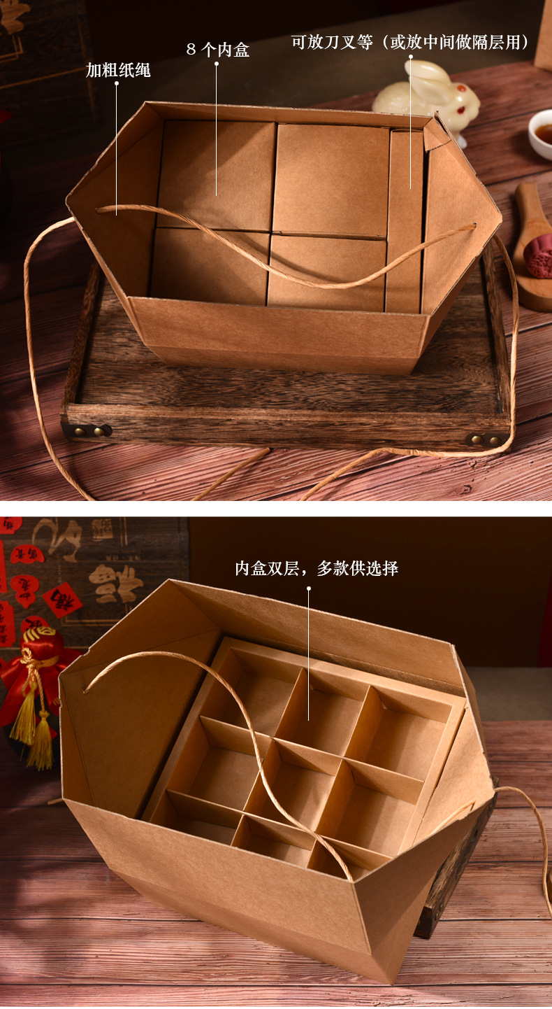 中国風レトロ菓子包装箱、九宮格4個入り/6個入り、卵黄餅、花餅、牛皮紙箱