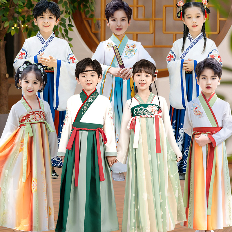 子供の漢服の女の子の国学服の時代の中国風の本の子供の3字の経の弟子の規の小学生の男の子の公演服