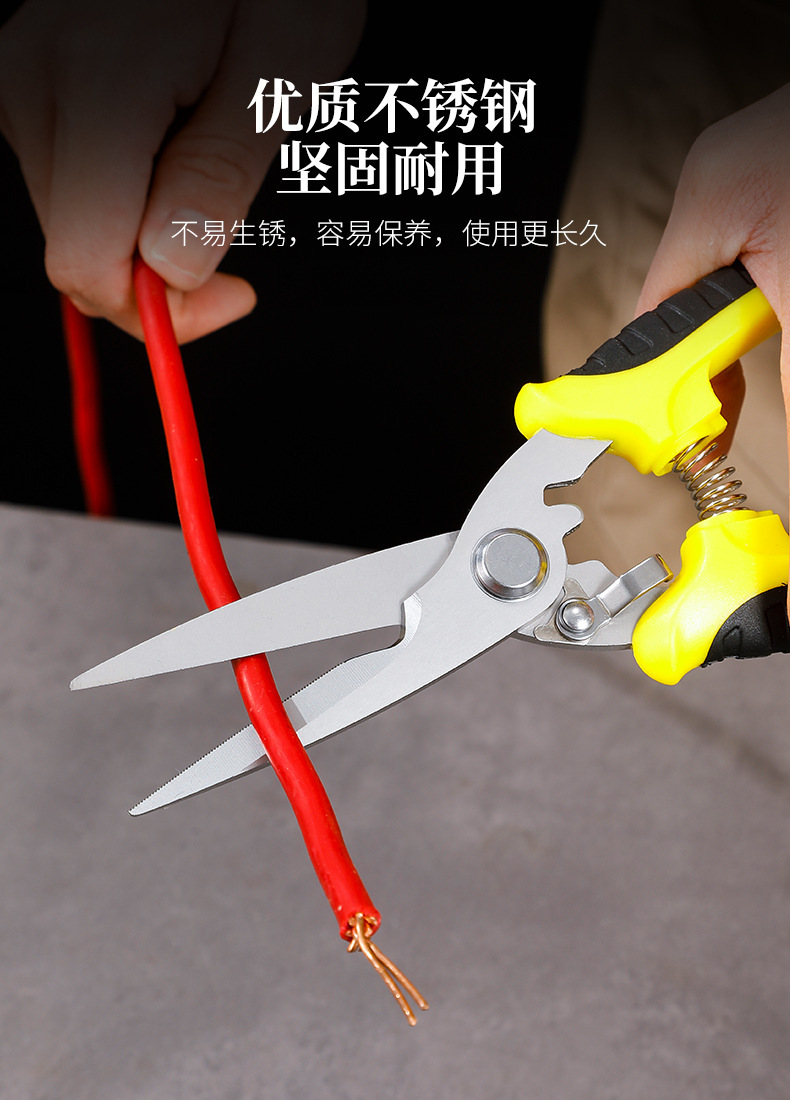 越境ハサミ工業用強力鉄皮ハサミ多機能pvc線溝手作業鋼帯電気アルミボタン電子ハサミ