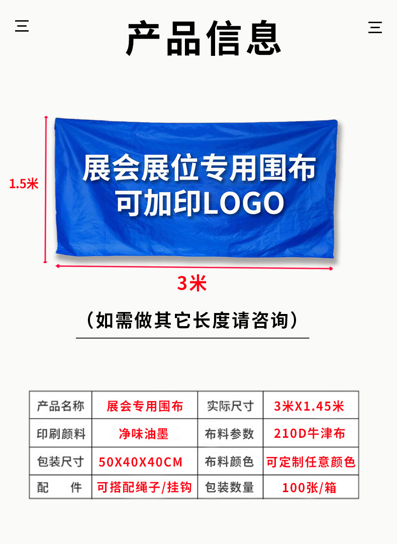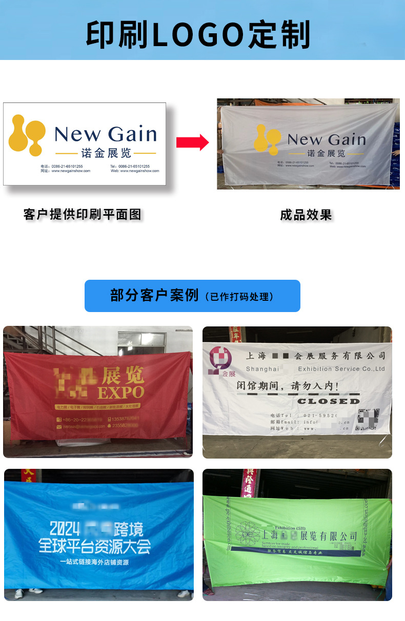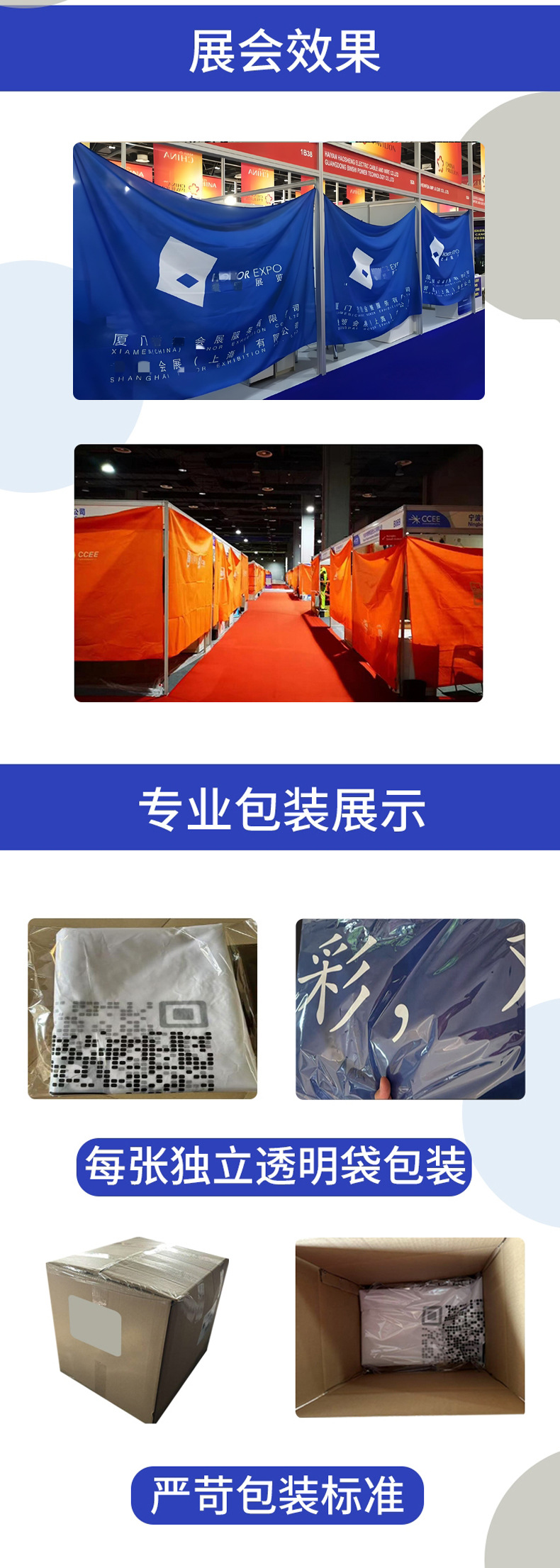 展示会用バナー、展示会専用吊り下げ布フェンス、印刷ロゴ