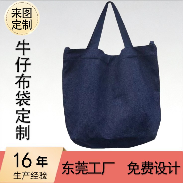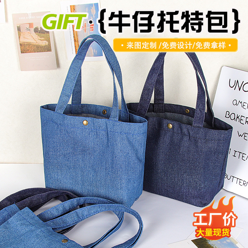 牛仔布手提袋定制印logo广告空白托特包单肩复古牛仔帆布袋定做