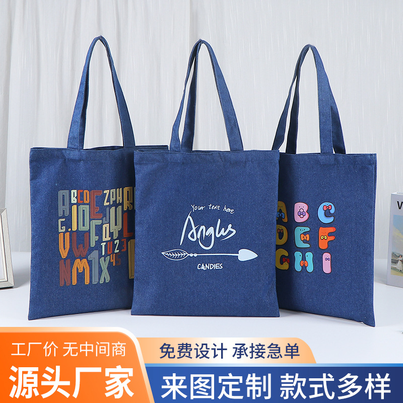 広告プリント卸売り水洗いデニムバッグシングルショルダー大容量携帯デニムキャンバスバッグ卸売り