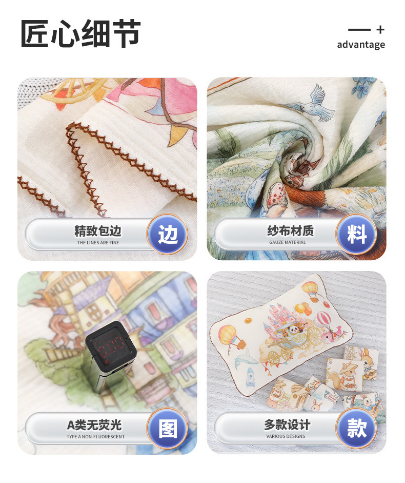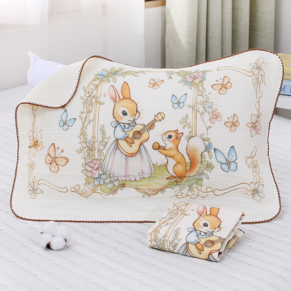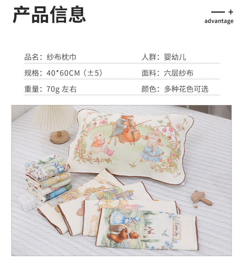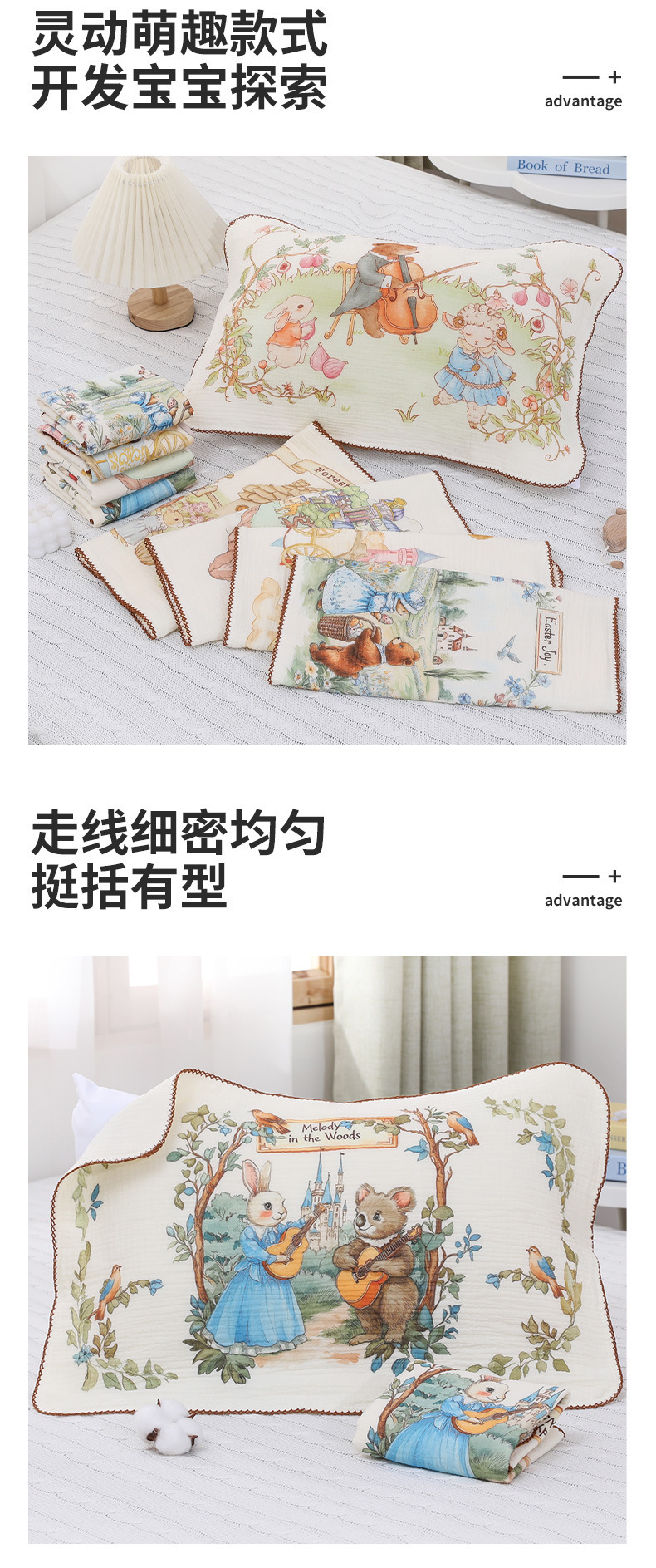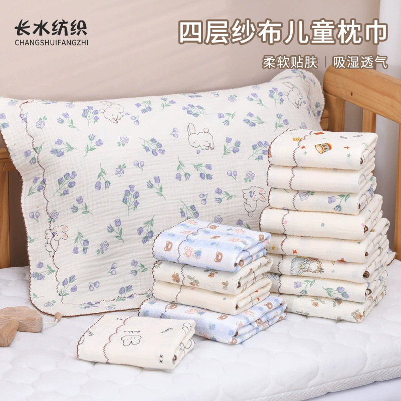 儿童枕巾40X60cm4层纱布全棉宝宝幼儿园柔软吸水纯棉枕头盖巾