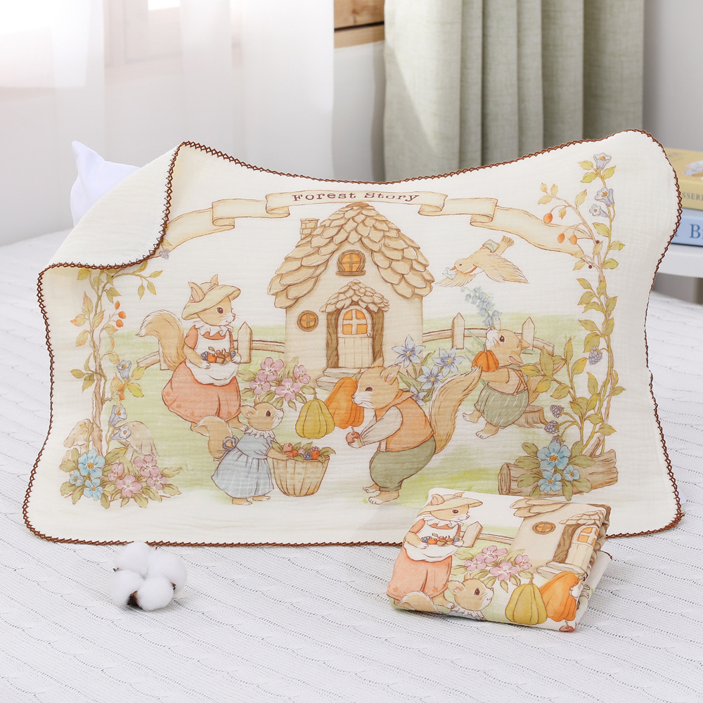 工場直販子供用ガーゼ枕カバー純綿タイプAベビー吸汗性四季通用枕カバー幼稚園ガーゼタオル