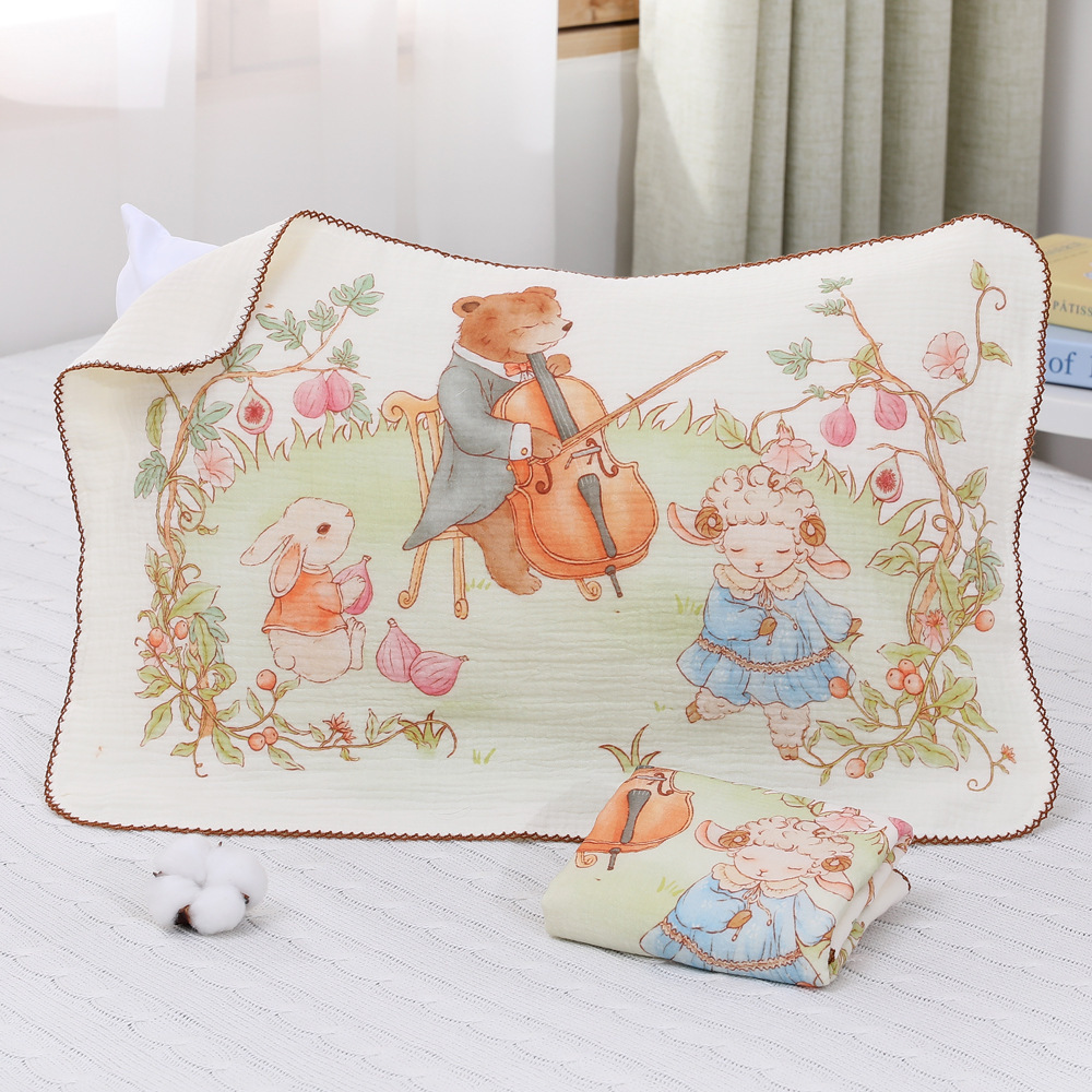 子供用枕カバー6層ガーゼ漫画枕タオル赤ちゃんガーゼ綿枕カバー柔らかい快適吸汗通気性枕タオル