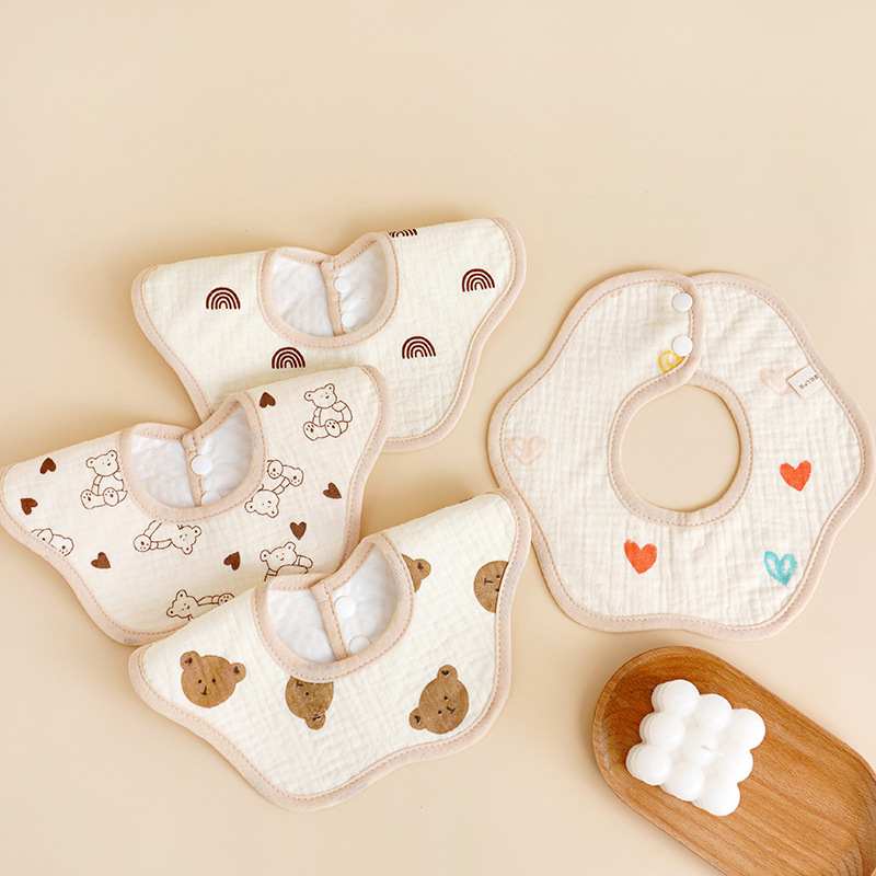 ベビーマウスタオル 360 度回転防水よだれかけ新生児純綿花びらよだれかけ赤ちゃん食べるポケット漫画