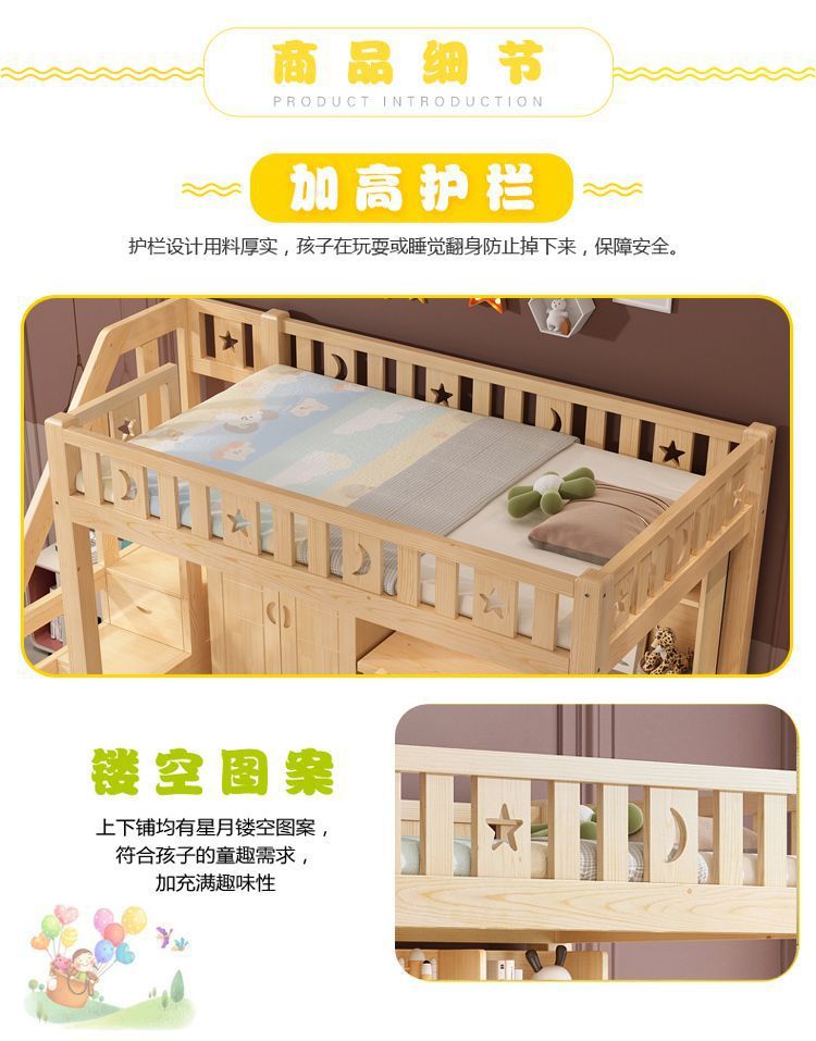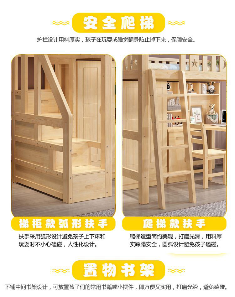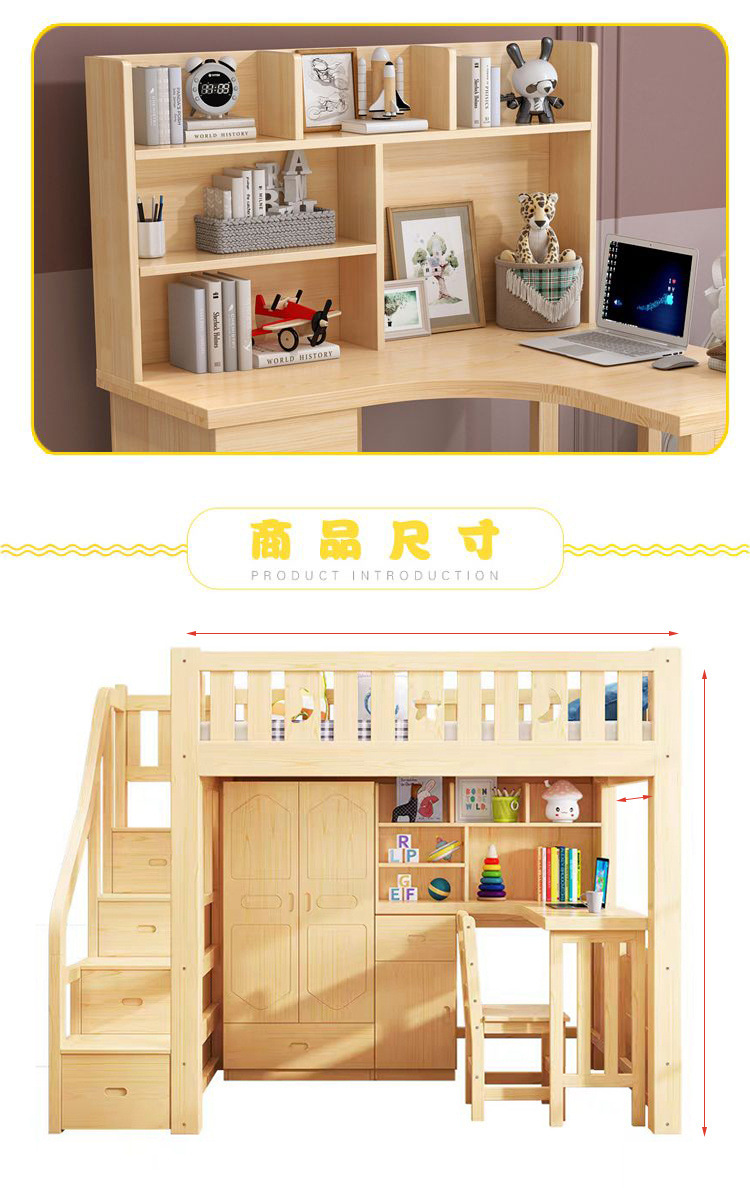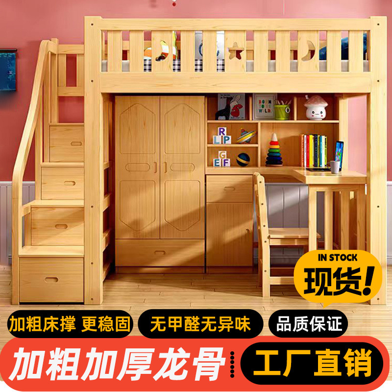 実木ベッド下テーブル高低ベッド一体組合せたんす多機能机学習ベッド高架小戸型工場