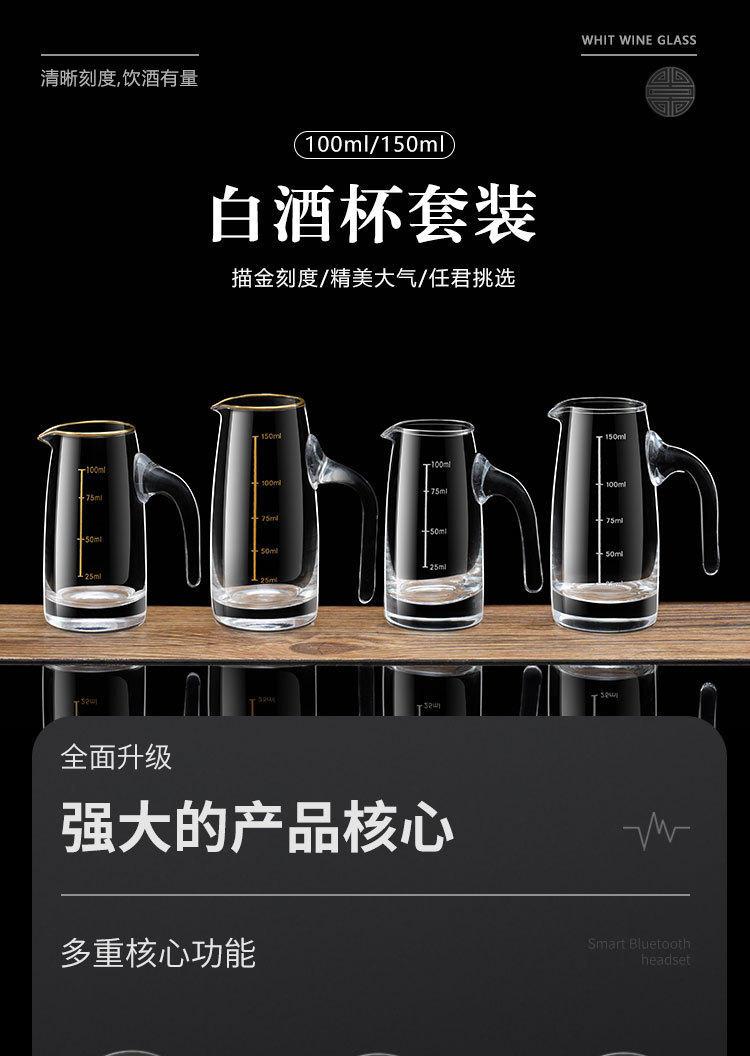 取っ手付きポット ホワイト目盛 100ml、取っ手付きポット ホワイト目盛 150ml、取っ手付きポット ゴールド目盛 100ml、取っ手付きポット ゴールド目盛 150ml