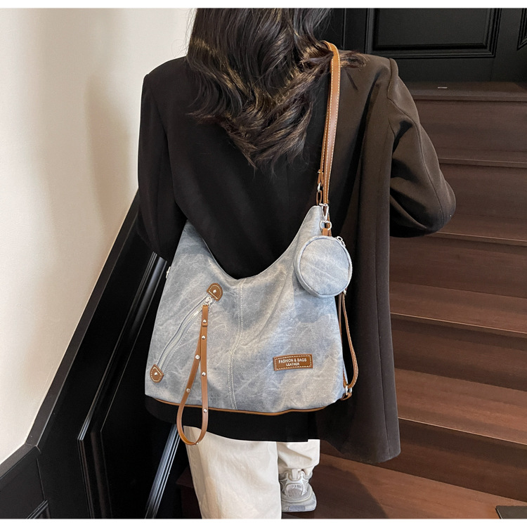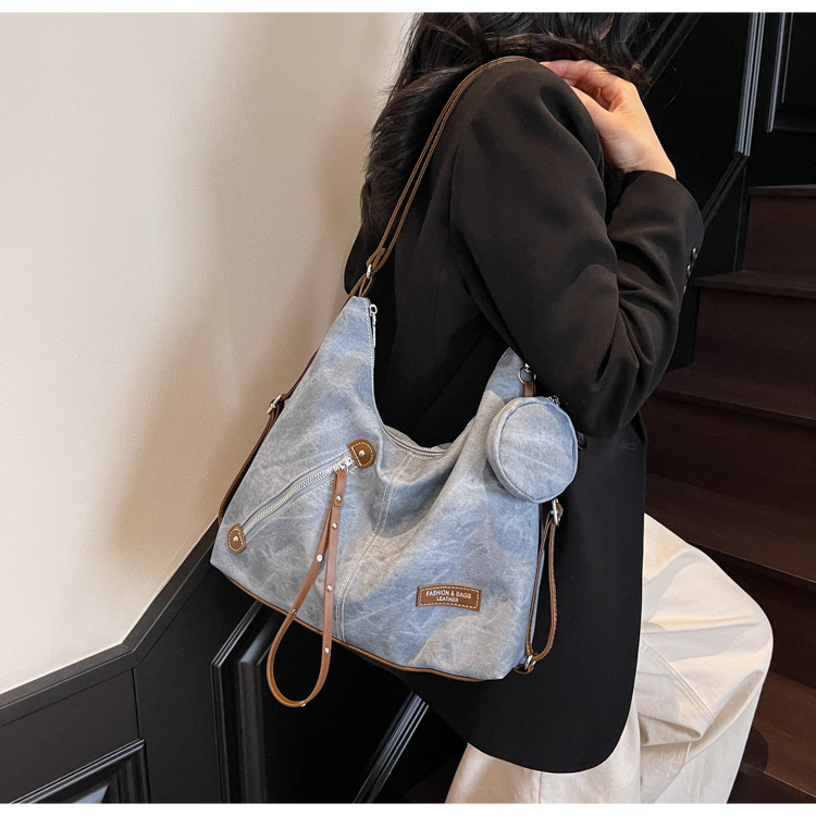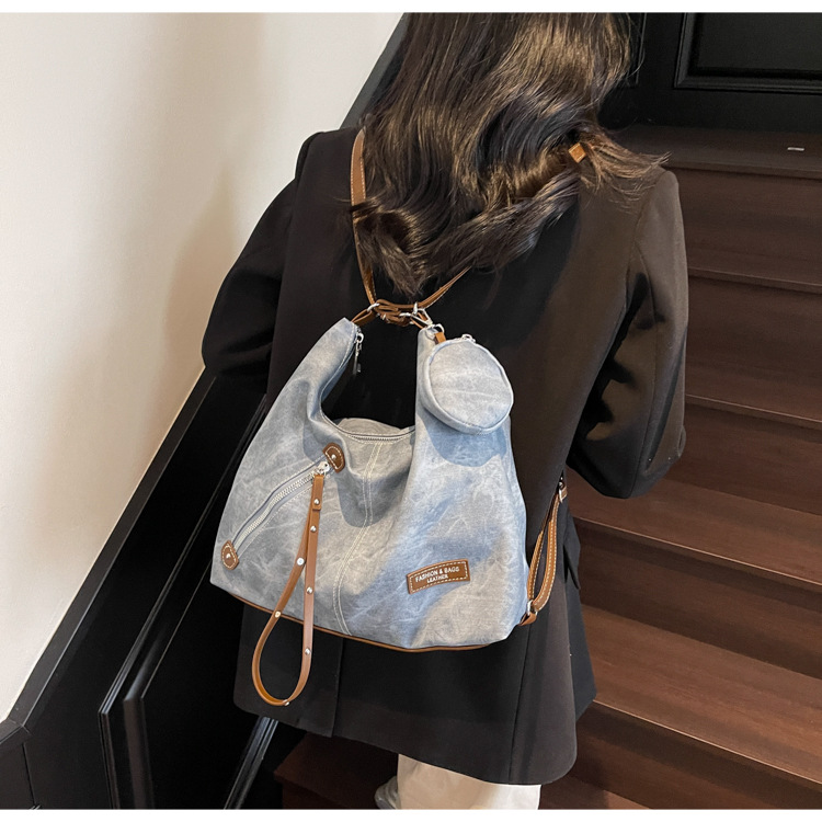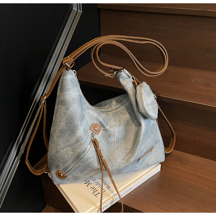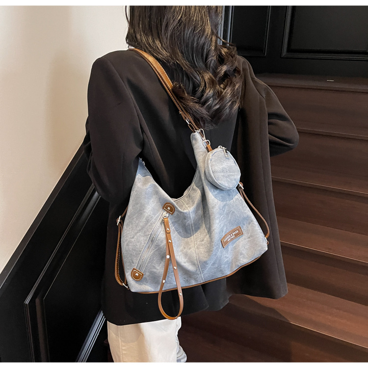 ファッション新商品ファッション小衆レトロデニム風トートバッグ学生の授業で通勤しています。