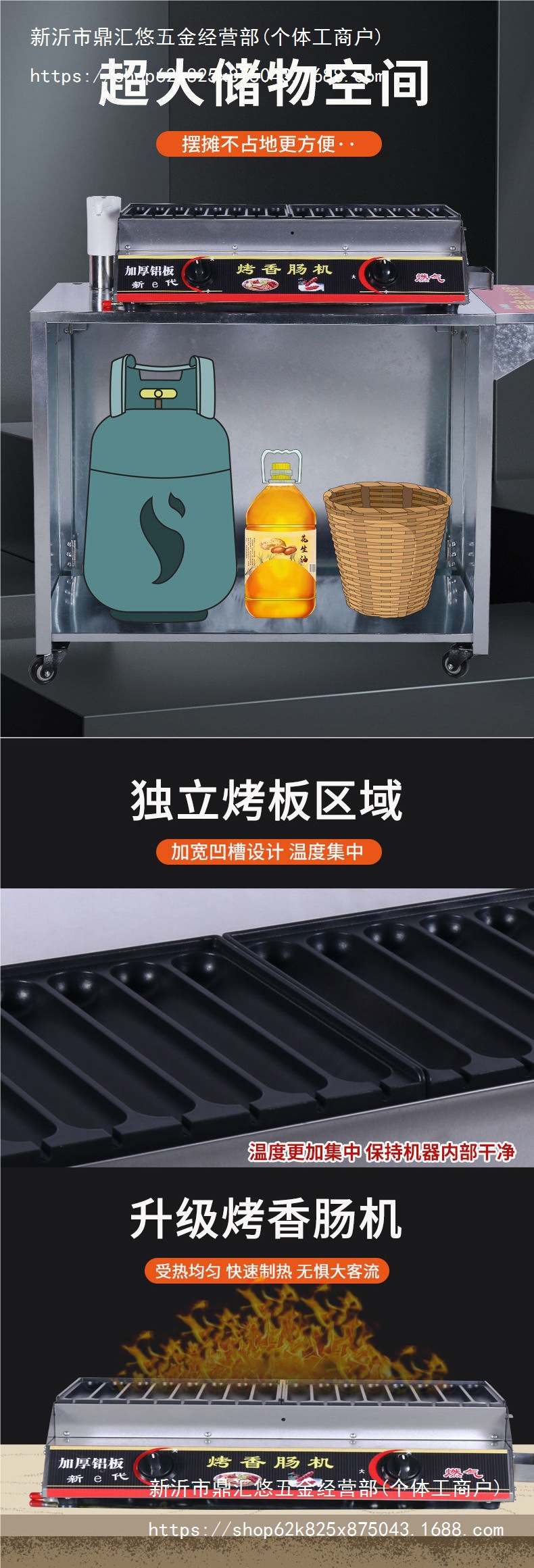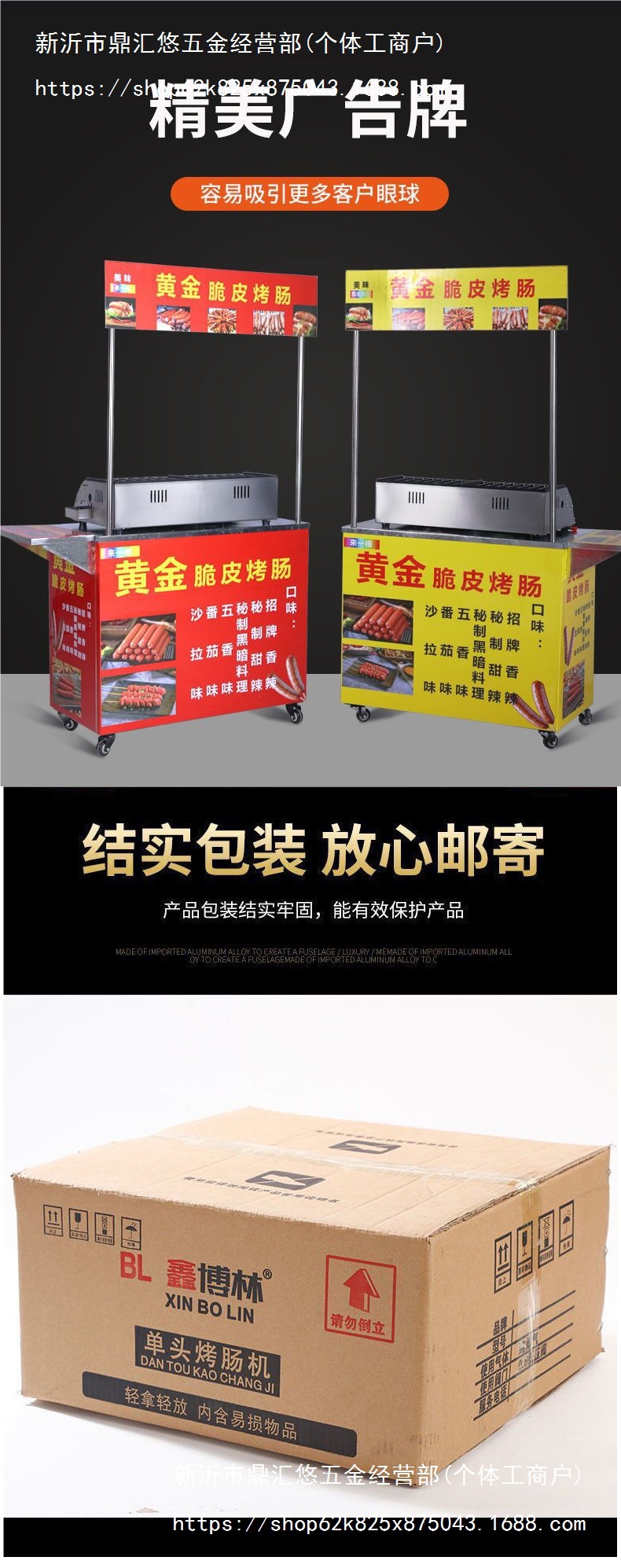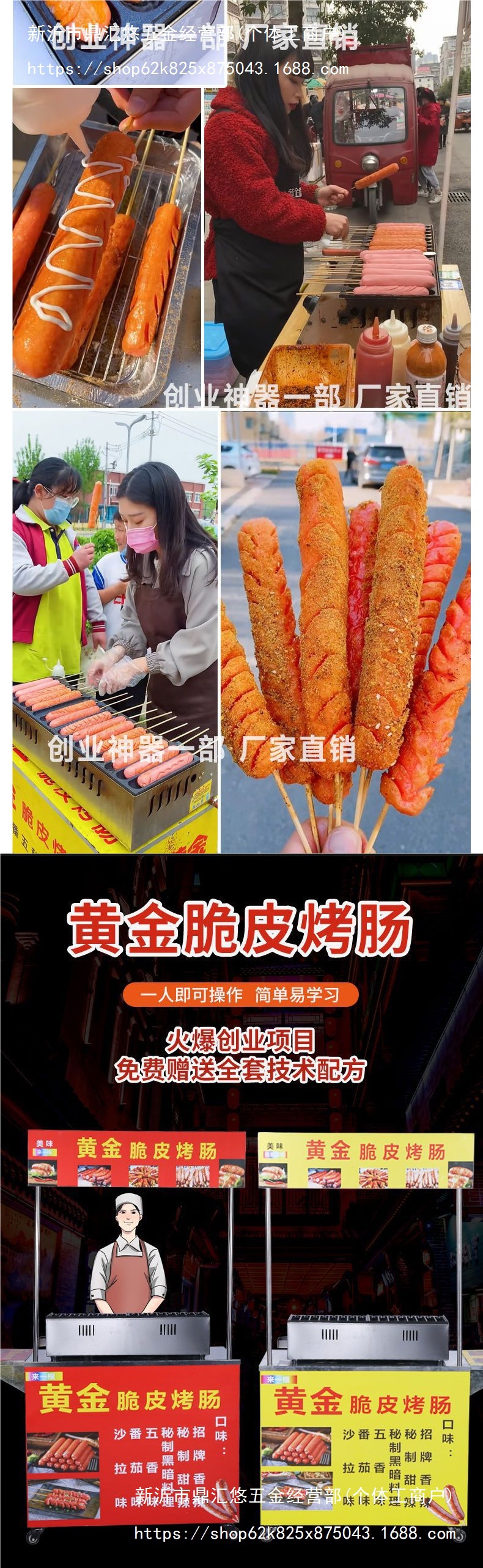 インターネット有名人のクリスピーソーセージマシン屋台折りたたみトロリーソーセージマシン多機能ガス商業スナックカート