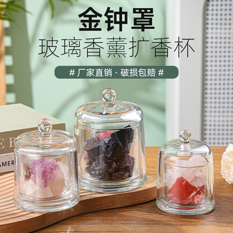 卸売り金鐘カバーガラスろうそくカップカバー付き水晶石香薫燭台カップ拡香石空カップろうそく容器