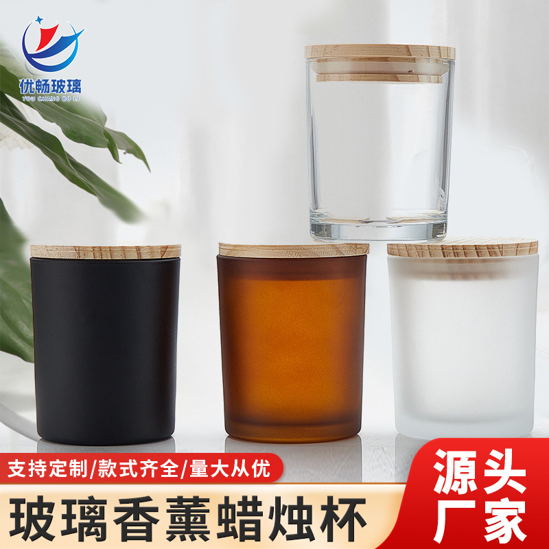 批发简约磨砂玻璃蜡烛杯家居创意香薰烛台diy装饰透明香氛蜡烛杯