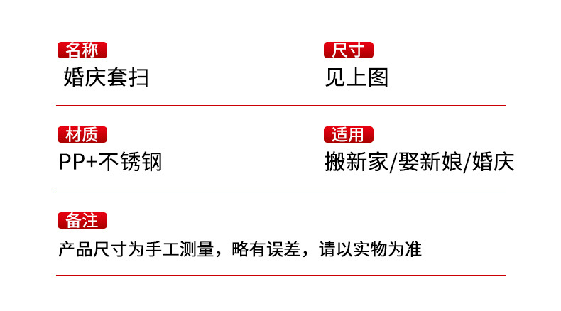 赤いほうきと箕のセットを結婚します。