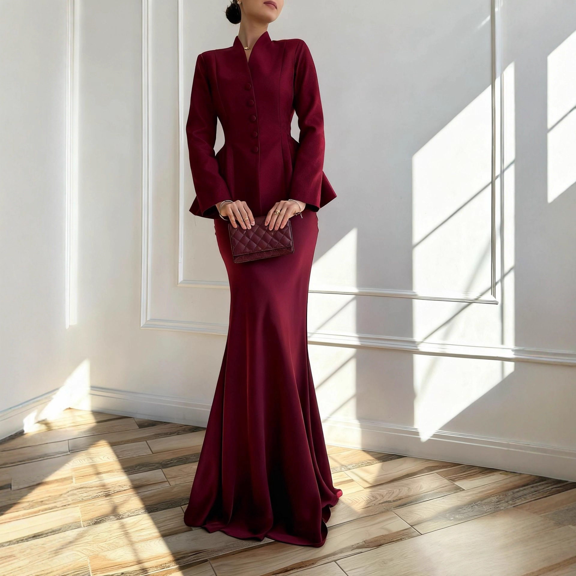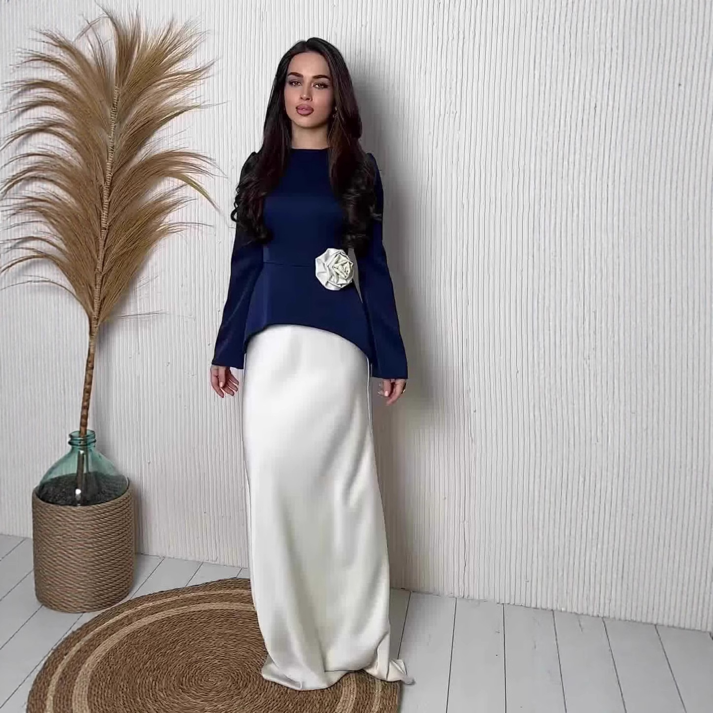 亚马逊欧美跨境2025年秋季新款优雅柔美收腰长袖长裙套装连衣裙女