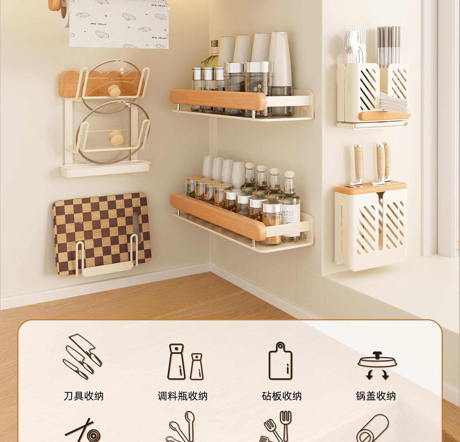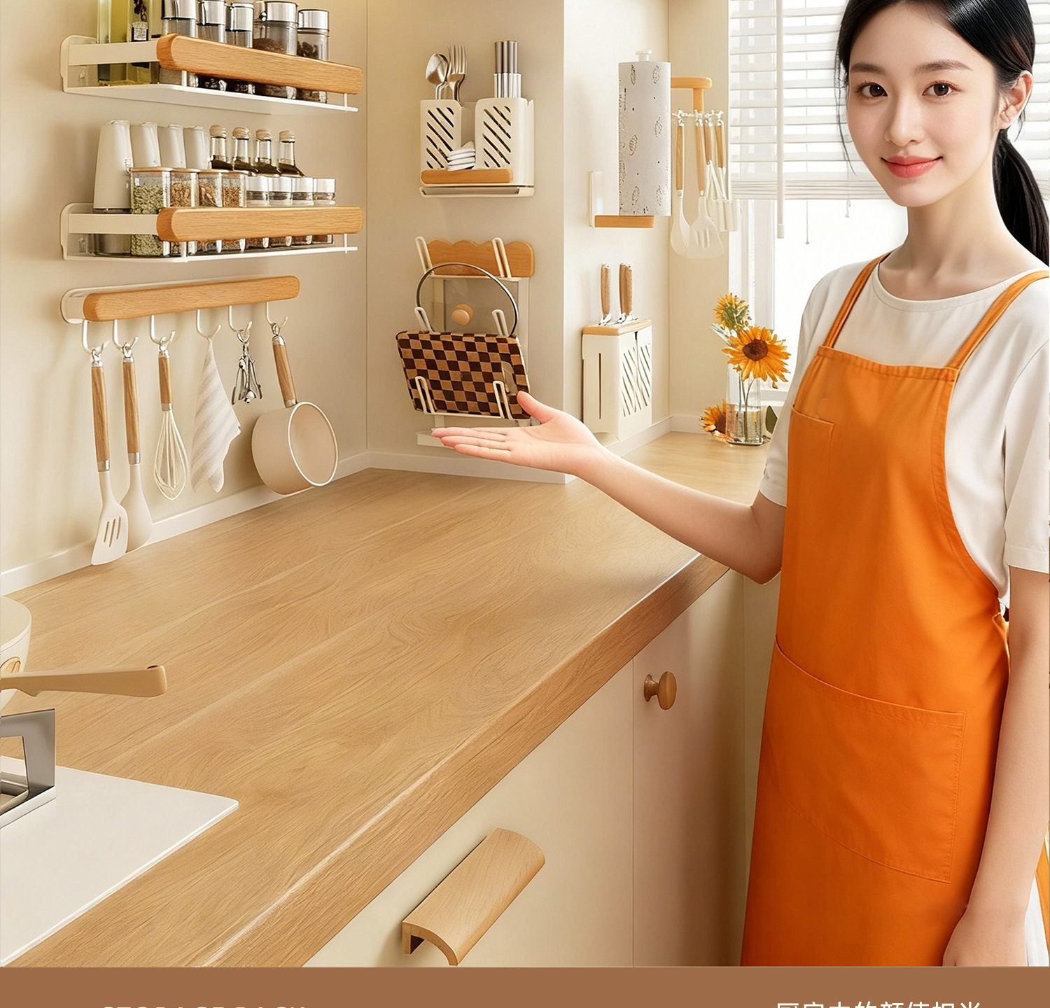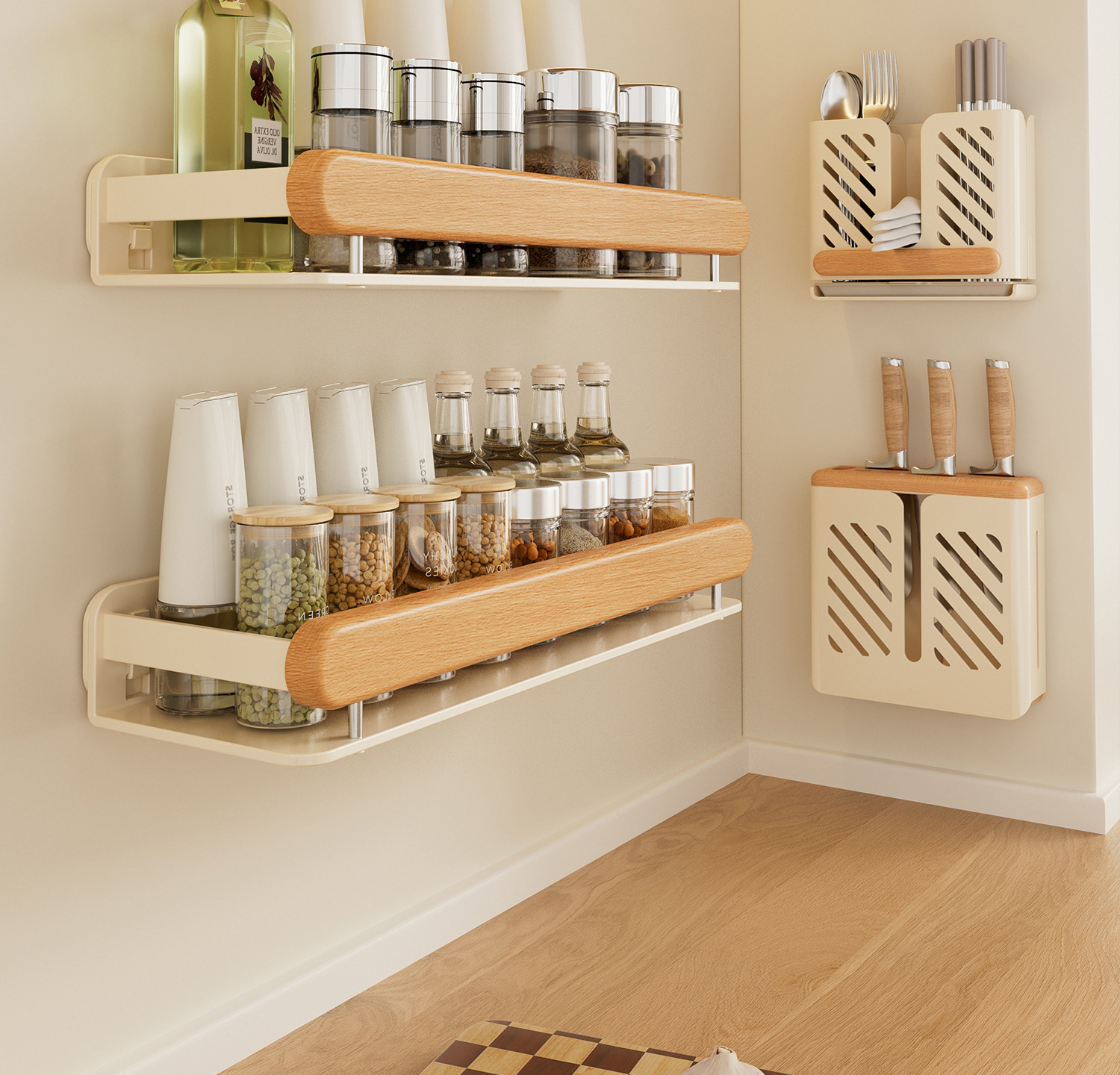 個物原木風厨房物置棚調味料品缶多機能壁に穴なし壁掛け収納棚