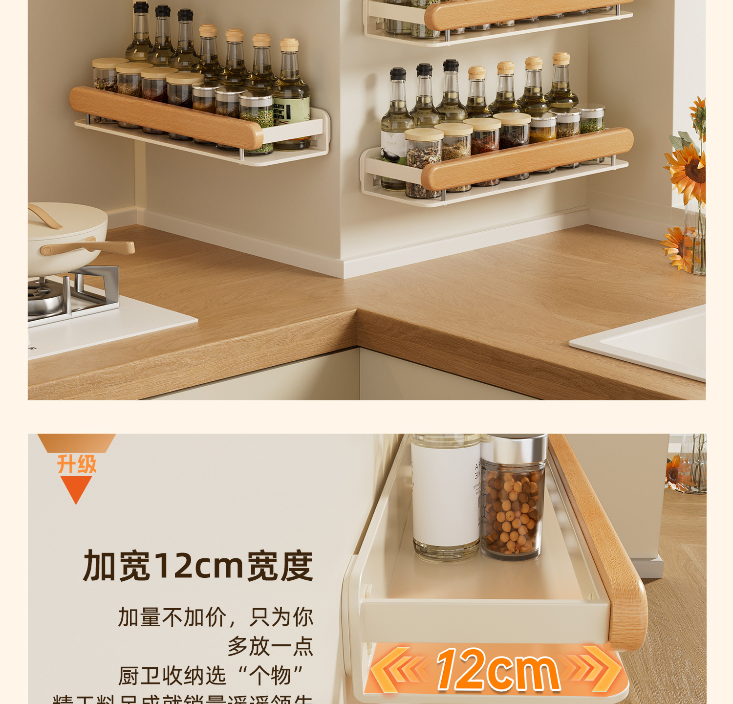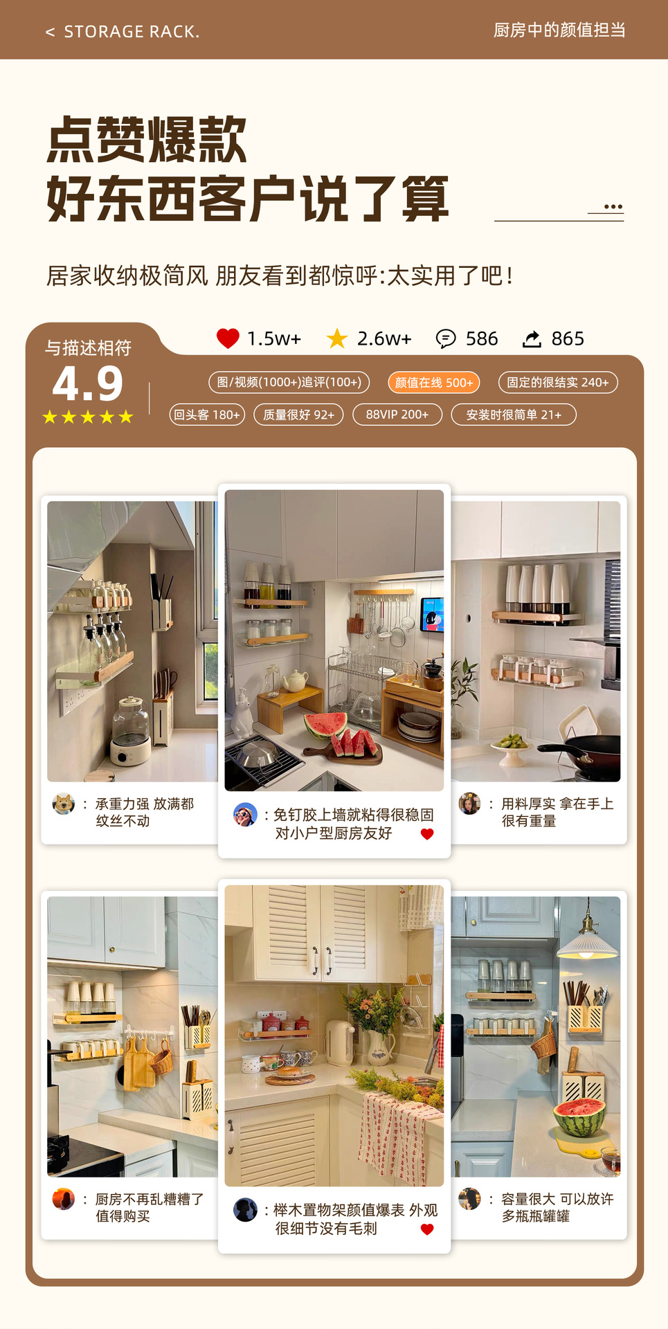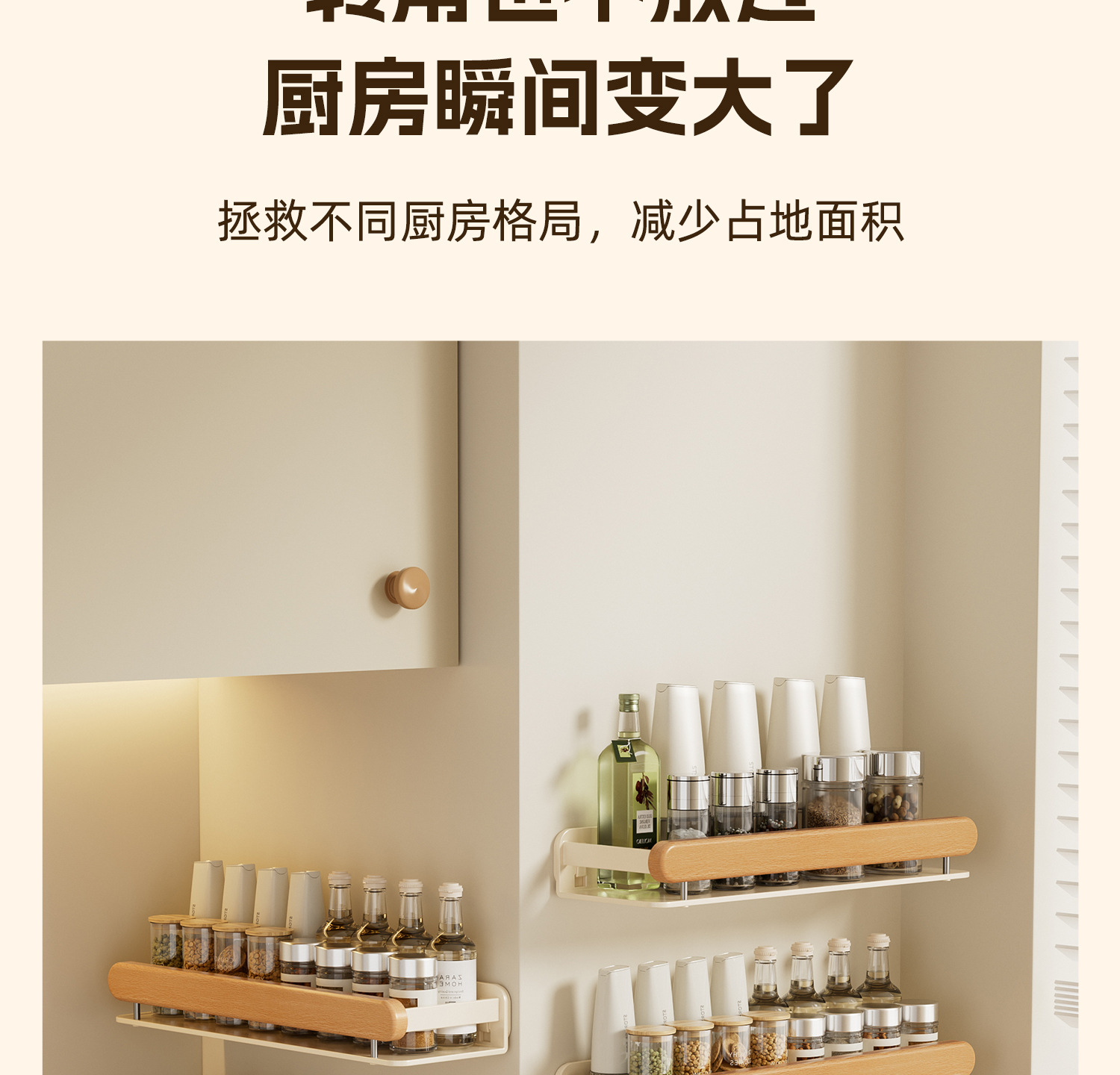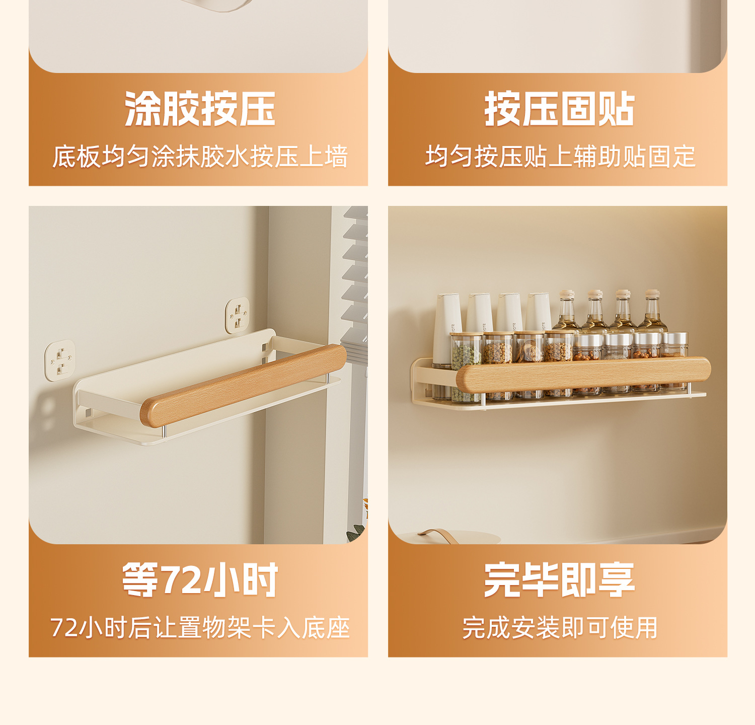 個物原木風厨房物置棚調味料品缶多機能壁に穴なし壁掛け収納棚