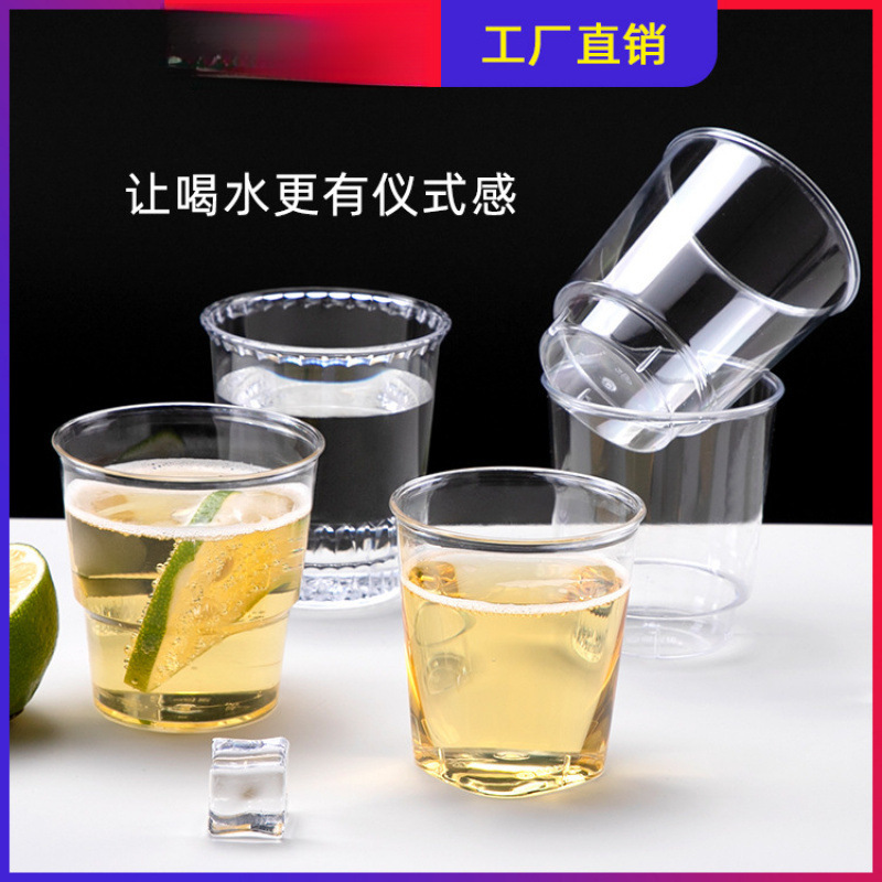 トランペット花使い捨てプラスチックカップ PS ハードカップ透明スペースカップ増粘航空カップテイスティングカップテイスティングカップ
