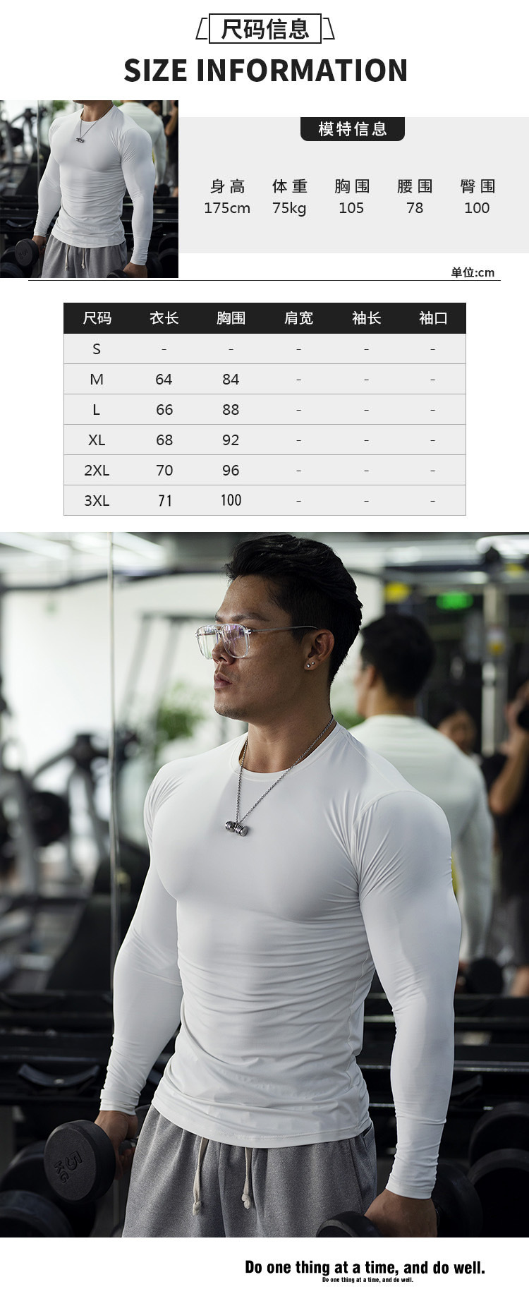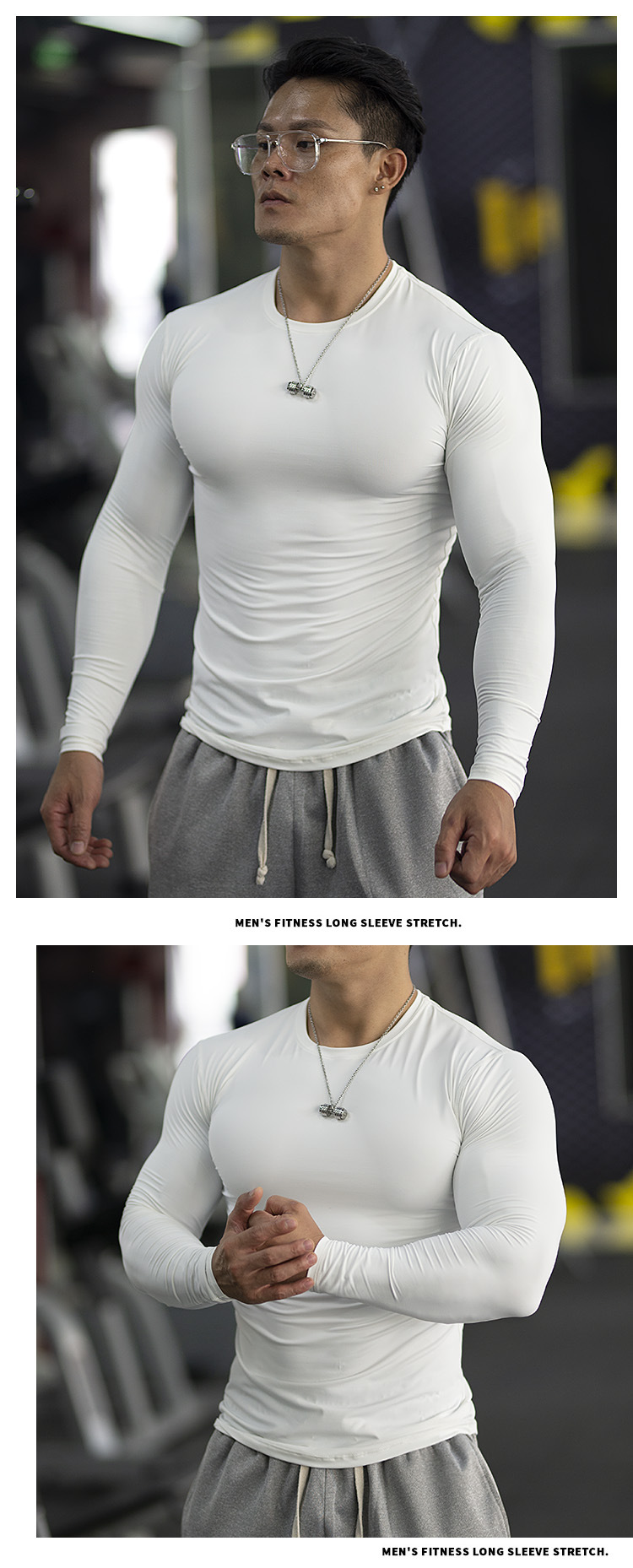 2025 早春フィットネスウェアメンズ長袖タイト弾性速乾スポーツトップ通気性 Tシャツボトリングシャツトレーニングホワイト