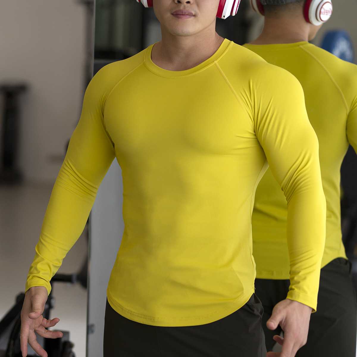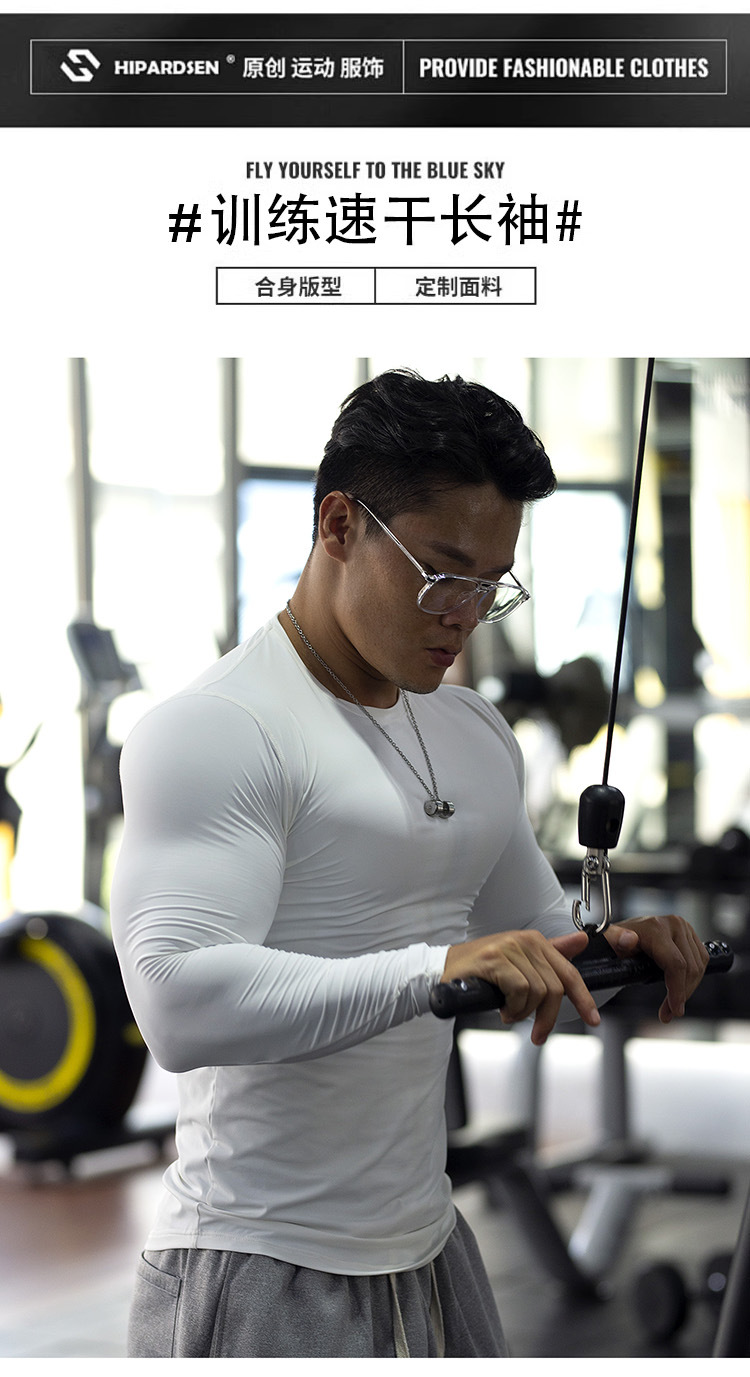 外贸跨境网眼弹力紧身动T恤男长袖健身衣服显大亚马逊独立站