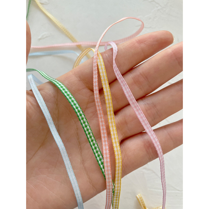 3mm4mm格子縞田園風格子縞リボンリボンリボン付き手作り髪飾りリボン人形飾り蝶結び