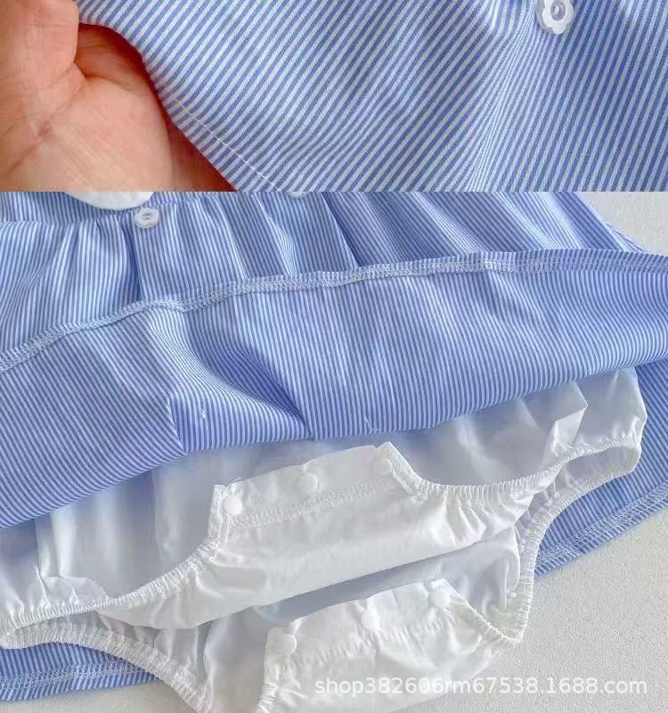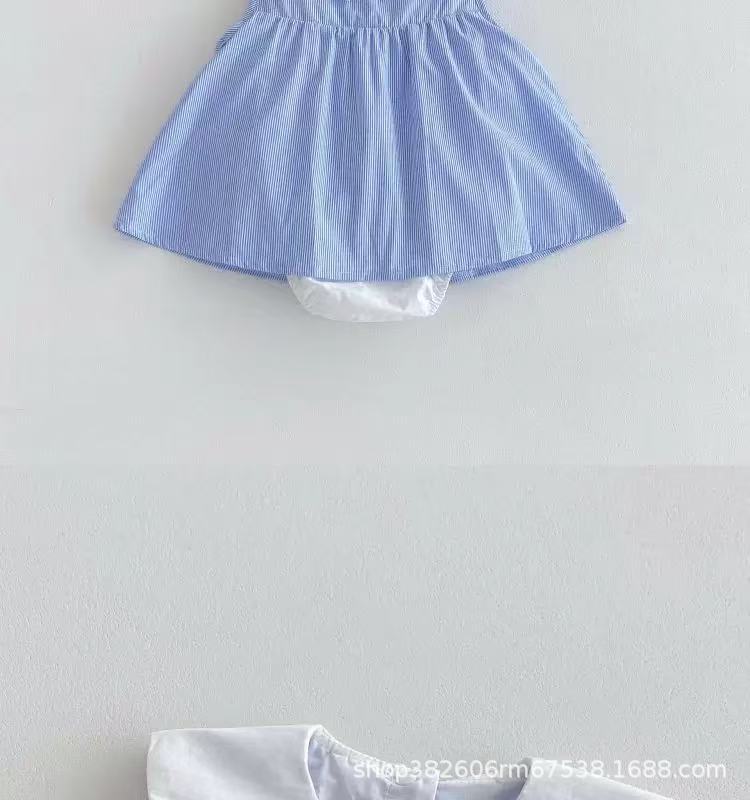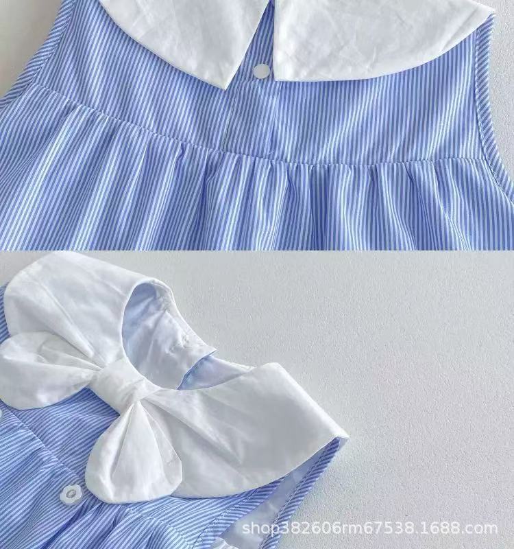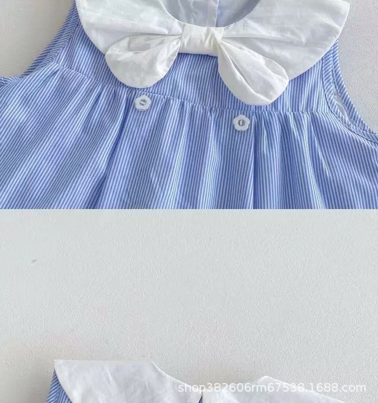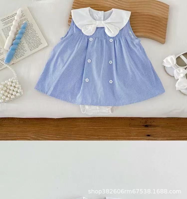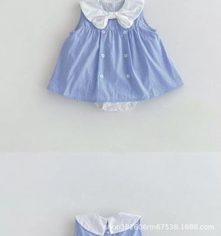 ベビー服夏オーバーオールスーツベビーストライプノースリーブ新生児夏スプリットリアルツーピース薄型セット