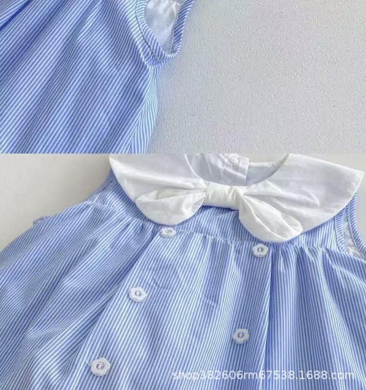 夏の袖なしの薄いタイプの赤ちゃんの服のお姫様のスカートのストライプの洋気の百日の歳の女性の赤ちゃんの夏服のお尻の服の潮
