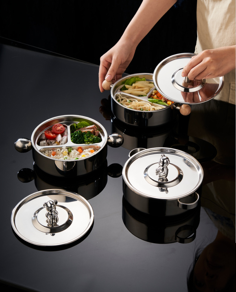 316 ステンレス鋼ディナープレート漫画動物ディナープレートディナーボウル家庭用ベビースープボウルライスボウル 304 子供の食品サプリメントディナープレート