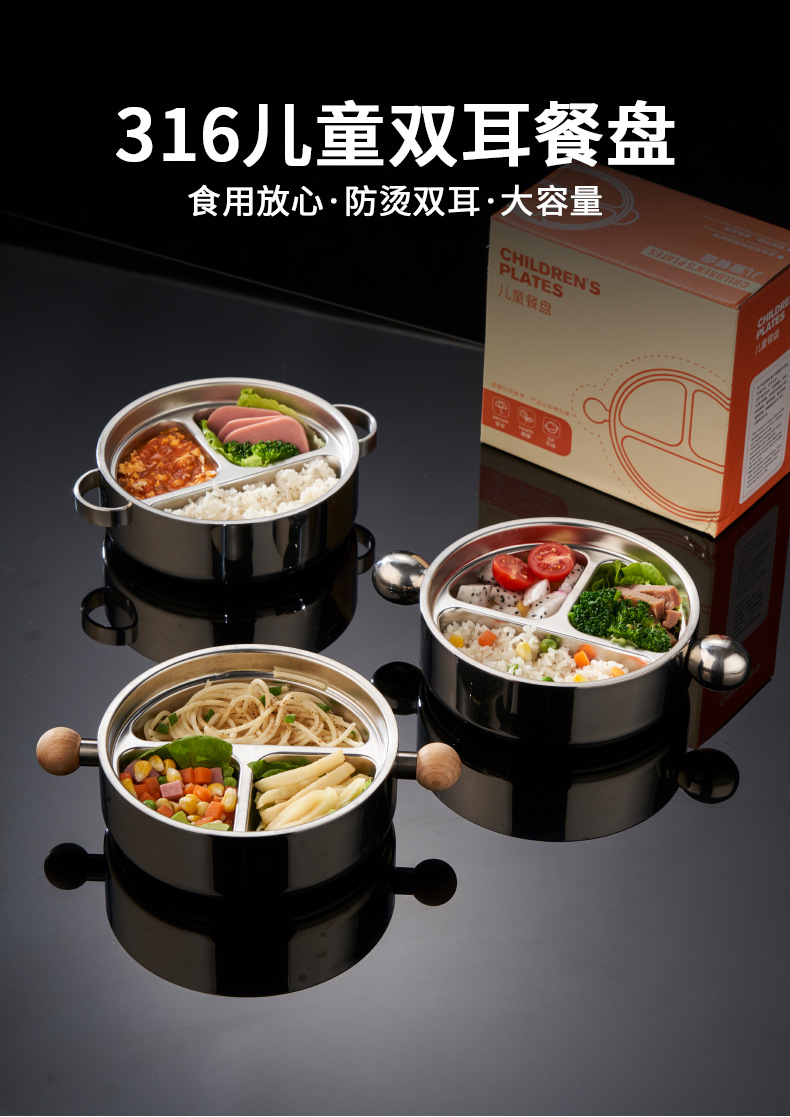 BX-スチールハンドル子供用三段プレート,BX-木製ハンドル付き子供用三段トレイ