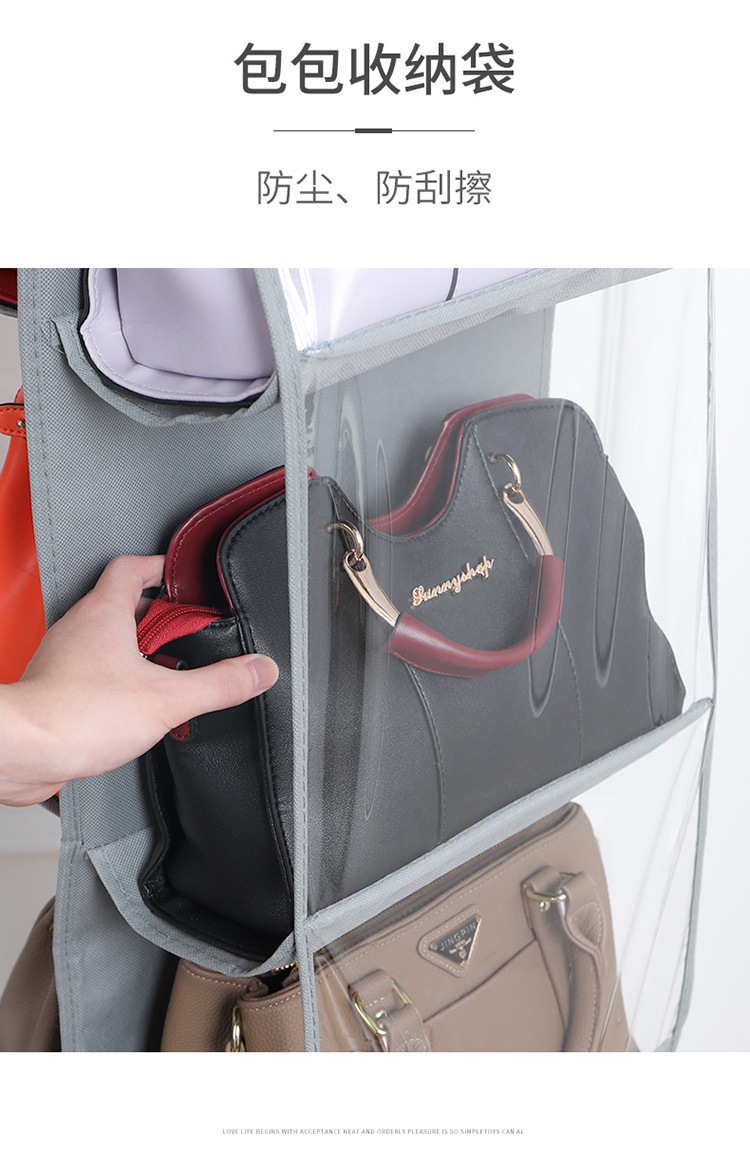 防尘透明网兜包包收纳挂袋门后置物袋双面多层壁挂式皮包收纳神器