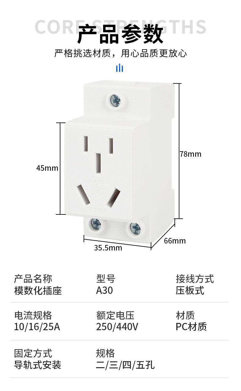 厚い銅 AC30 モジュラ電源ソケット配電ボックスレール取り付け 3 穴 5 穴ヨーロッパおよびアメリカのソケット