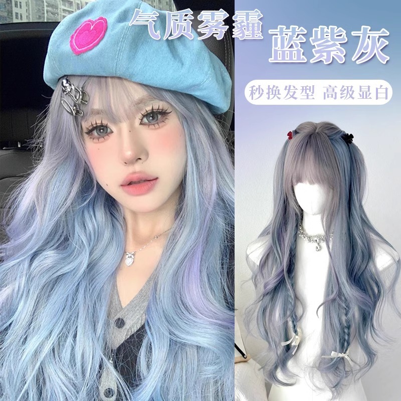 夏の新型亜文化かつらの女性の中で長い髪の紫色のJKは魚の頭の鎖骨の髪を整えてJKの自然な全体の頭のカバーを整えます。