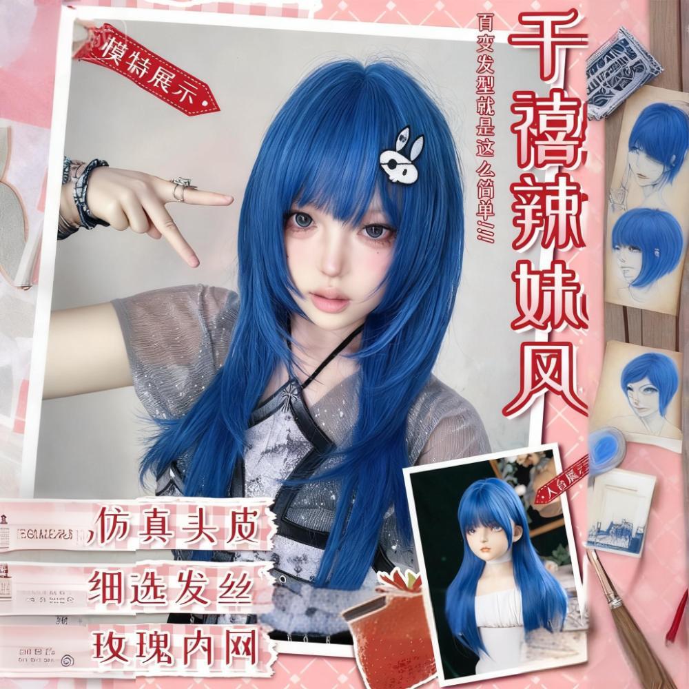青い髪セットの女性の長い髪の全頭セット式の夏の日常は自然でだらだらしています。