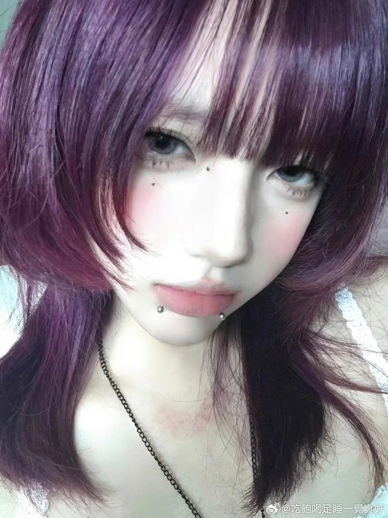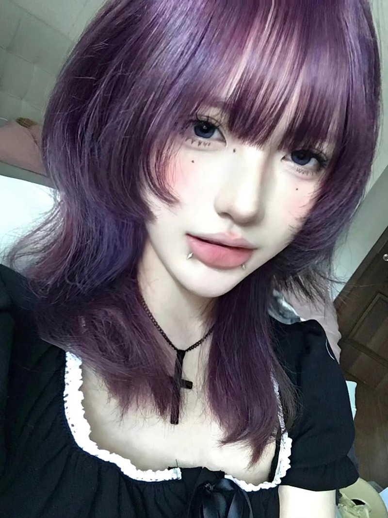 魅惑紫假发短发全头套式亚文化巴黎画染渐变挑染高层次狼尾鲻鱼头