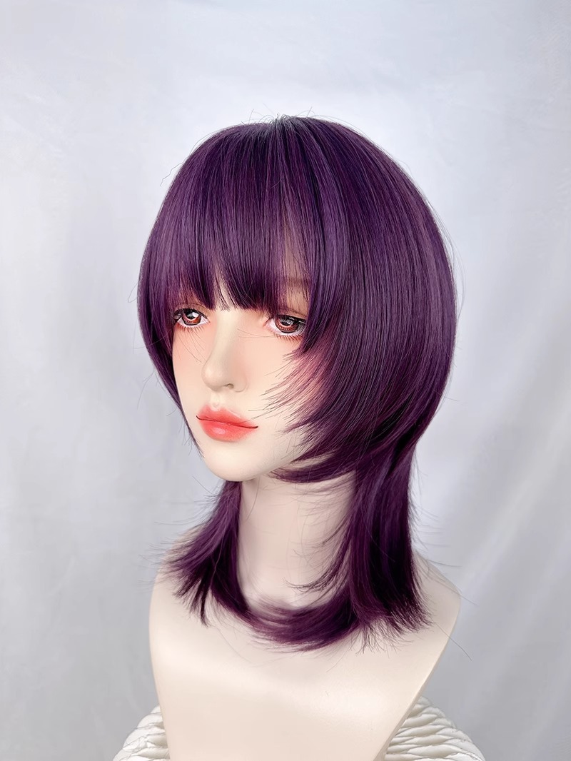 レイヤードショートウルフテールパープル+ヘアネット,レイヤードショートウルフテールパープル+ケア5点セット