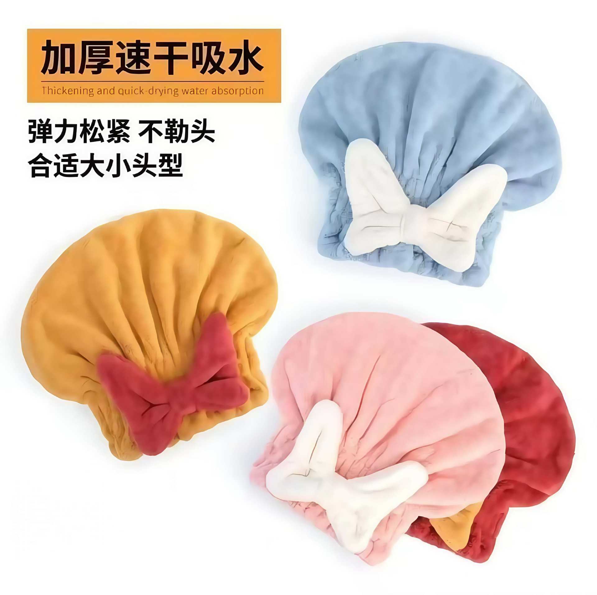 浴帽干发帽女加厚超强吸水速干可爱蝴蝶结珊瑚绒干发巾擦头巾批发